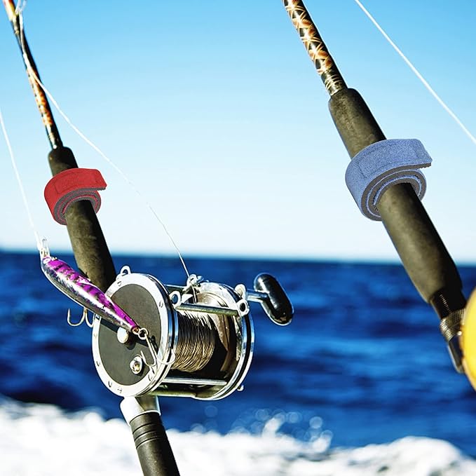 Unikalny design: pasek na wędkę ma mocną klamrę Velcro, dobrą elastyczność i odporność na ścieranie, można go łatwo rozciągnąć do idealnej długości. Z wąskim cięciem w pasku zaprojektowanym tak, aby przechodził przez pierścień prowadzący