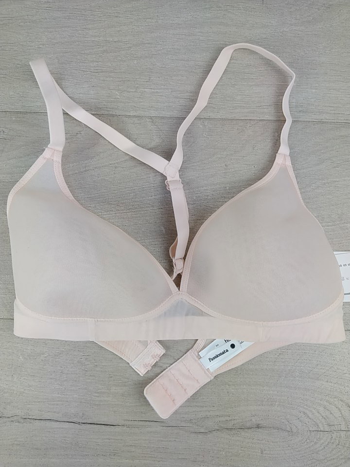 Biustonosz damski Passionata Holidays Triangle Spacer to elegancka i komfortowa propozycja dla kobiet ceniących nowoczesny design i wygodę. Model w kolorze Rose Perle (róż perłowy) w rozmiarze S został zaprojektowany bez fiszbin, z lekkimi miseczkami pół przeźroczystymi, które zapewniają naturalny kształt i przewiewność.