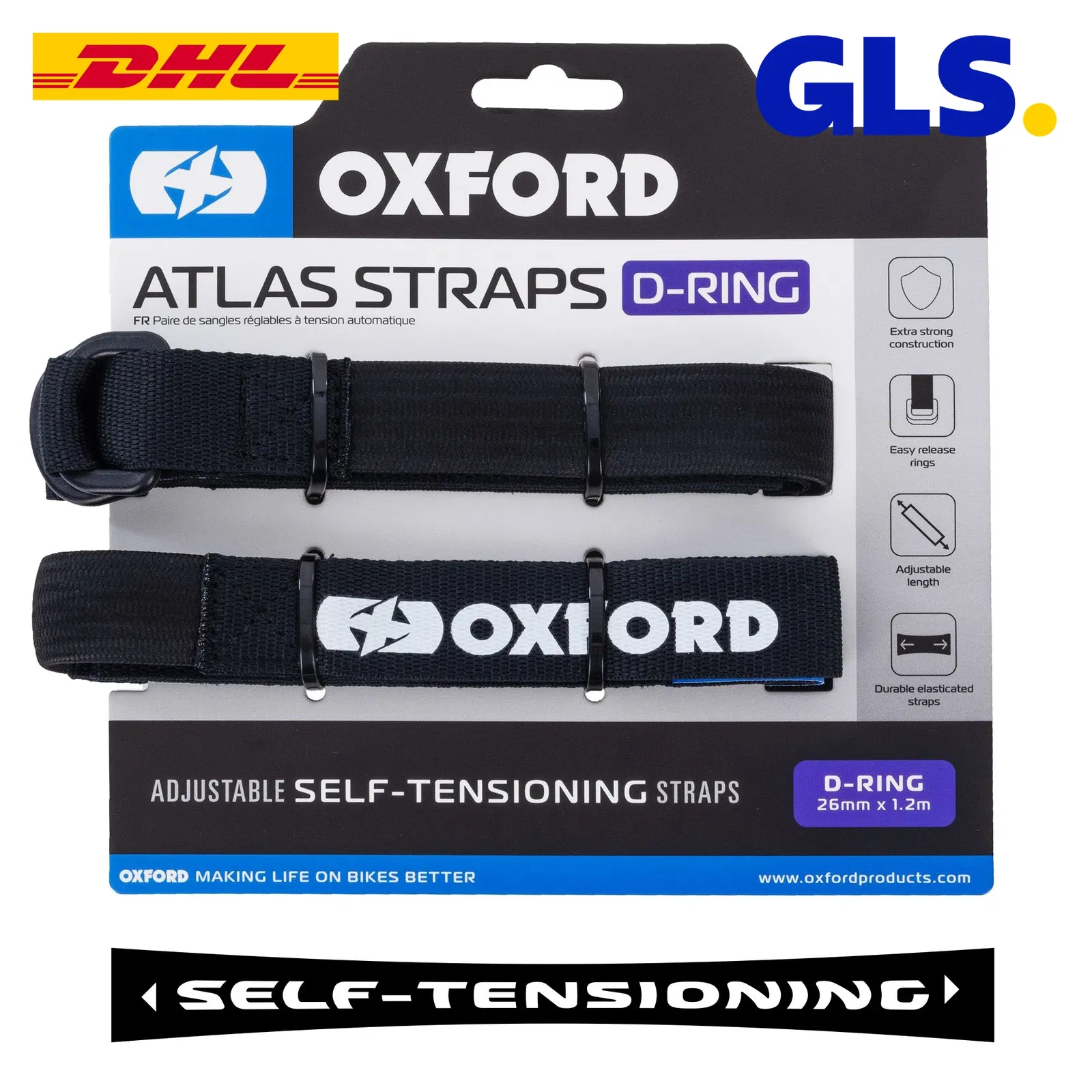 Pasy transportowe Oxford Atlas D-Ring do mocowania bagażu 26mm 1,2m czarny - OX324