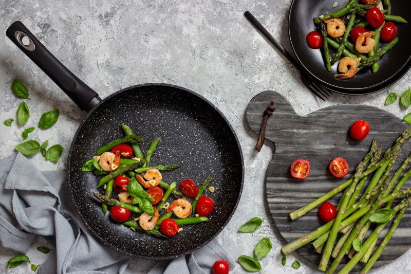 Patelnia aluminiowa z powłoką marmurkowo-ceramiczną pozwala na bezpieczne przyrządzanie chrupiących, aromatycznych i zdrowych potraw.