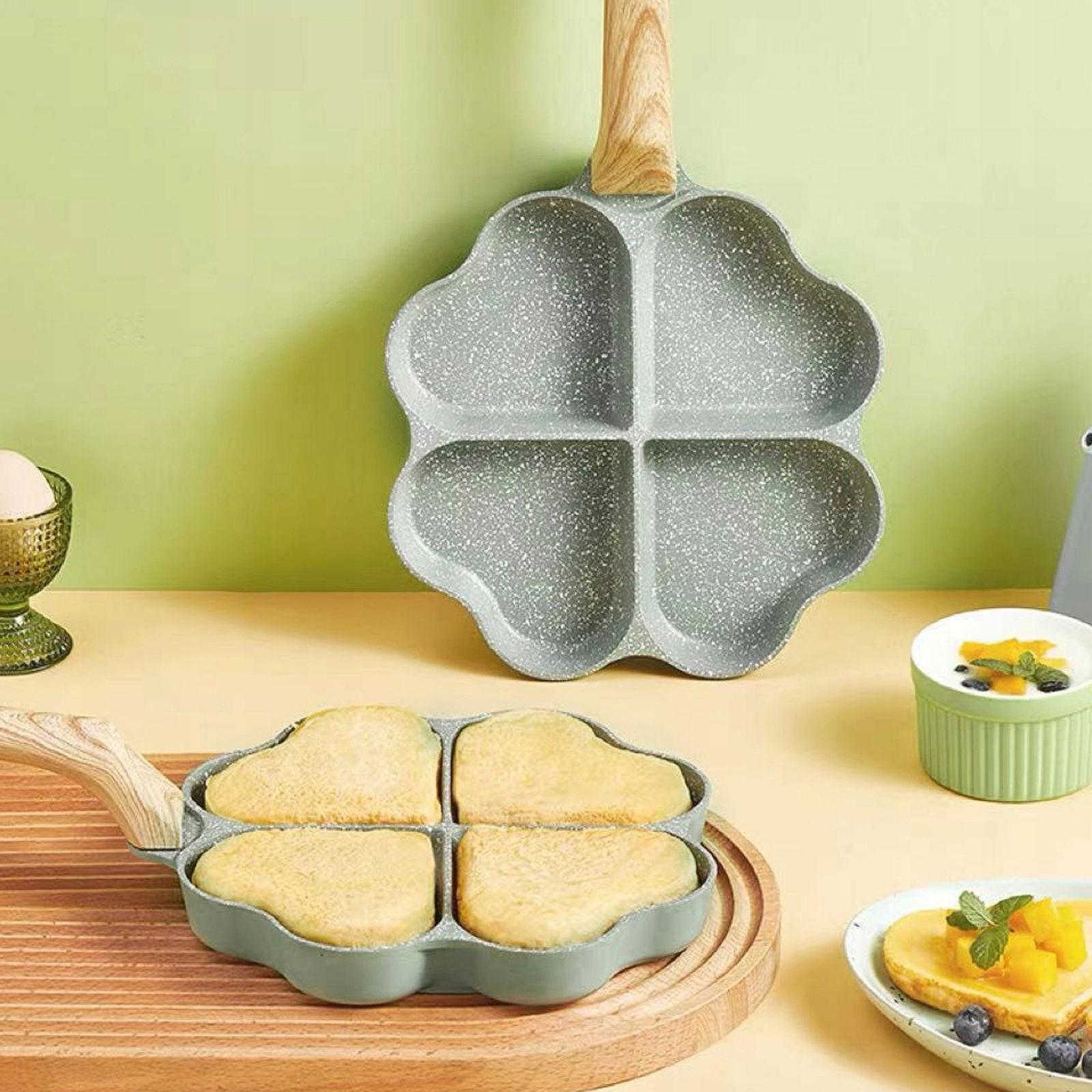 Patelnia do jajek w kształcie serca z 4 gniazdami to idealny sposób na perfekcyjne jajka sadzone, mini naleśniki lub placki – bez przywierania i bez bałaganu
