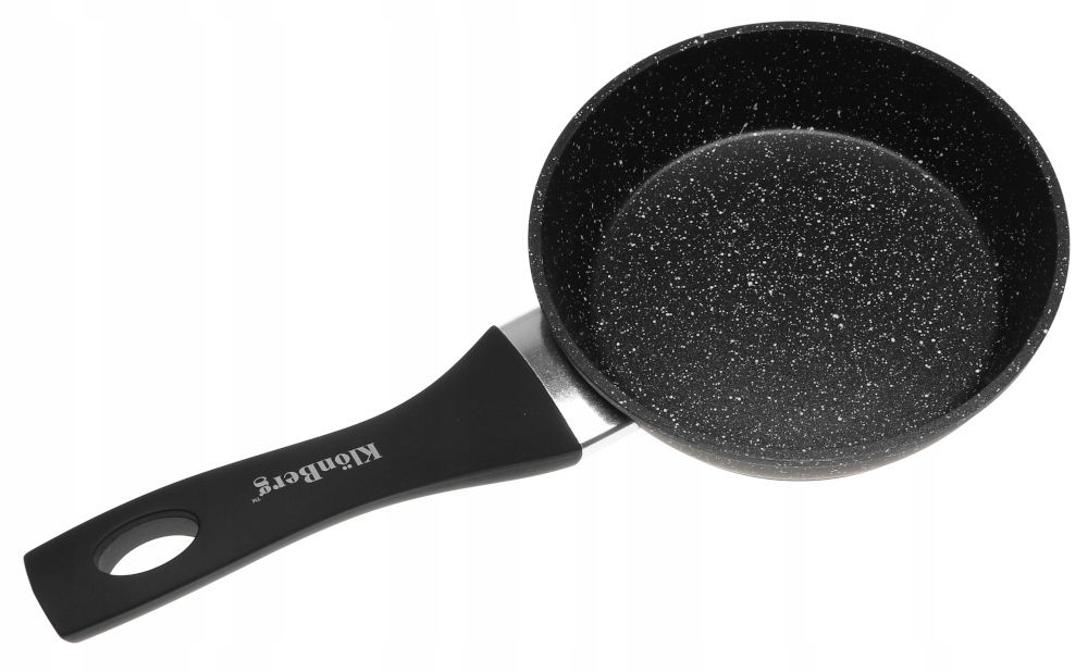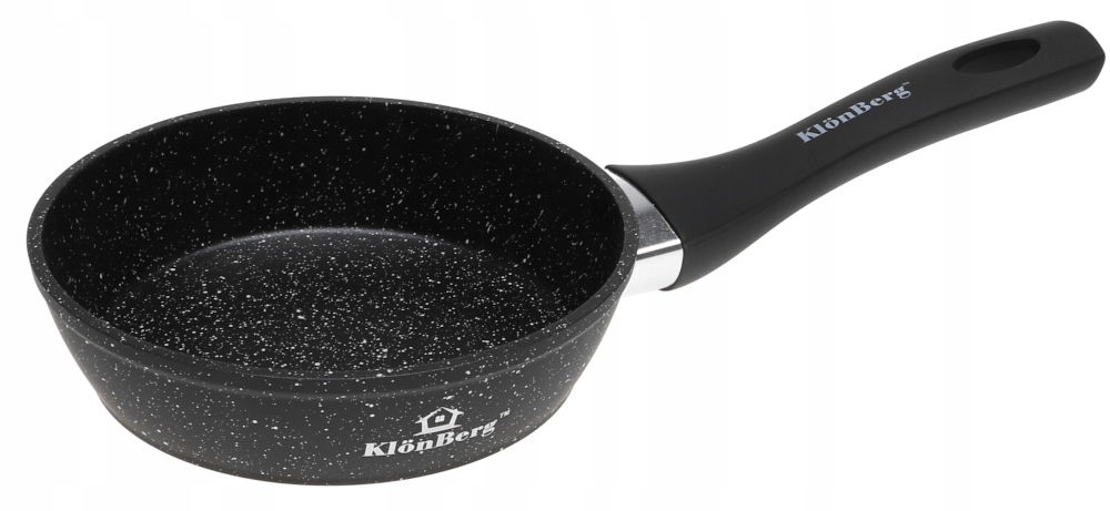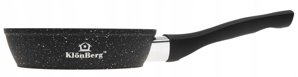 - Ergonomiczny uchwyt, wykonany z odpornego na wysokie temperatury gumowanego tworzywa sztucznego, zapobiega wyślizganiu się patelni z rąk podczas użytkowania