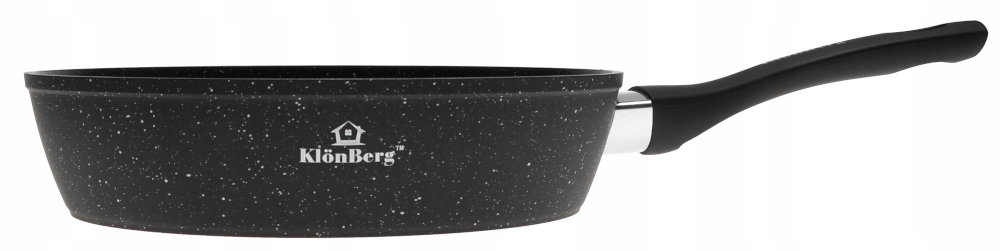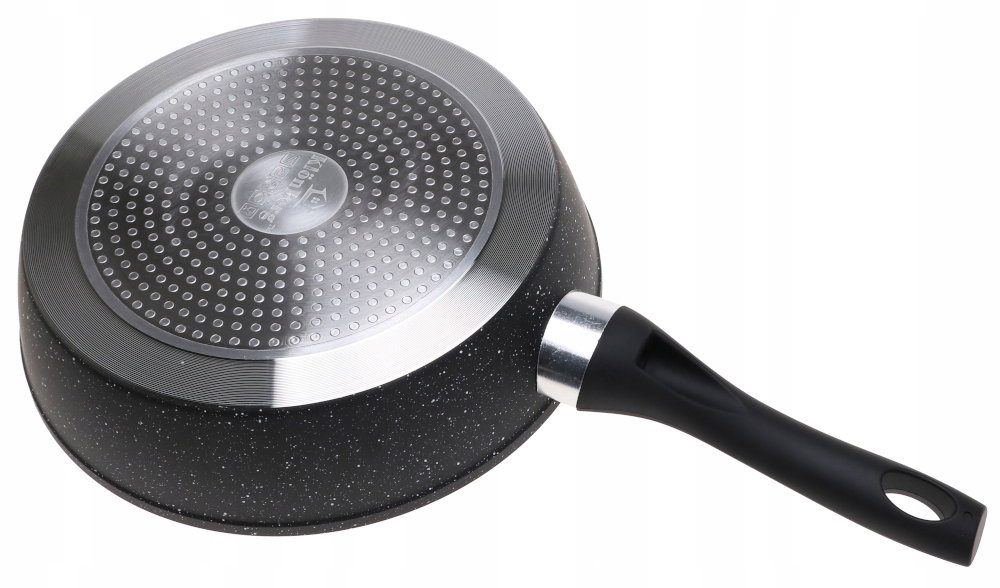 - Ergonomiczny uchwyt, wykonany z odpornego na wysokie temperatury tworzywa sztucznego, zapobiega wyślizganiu się patelni z rąk podczas użytkowania