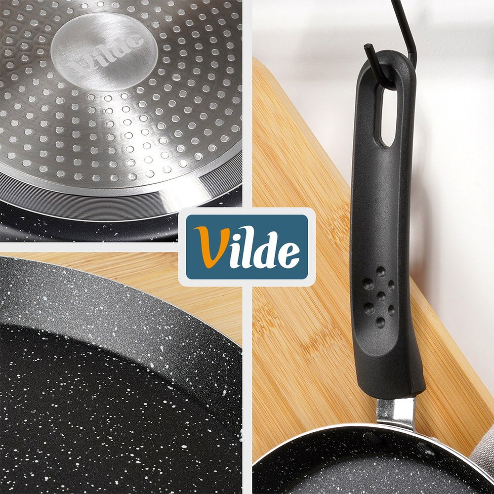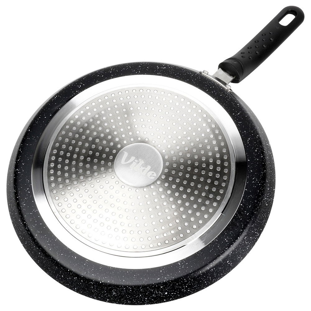 Nieprzywierająca powłoka granitowa - Patelnia wykonana z aluminium z nieprzywierającą powłoką granitową w czarnym kolorze. Powierzchnia nieprzywierająca umożliwia przygotowywanie zdrowych i smacznych posiłków z minimalną ilością tłuszczu.