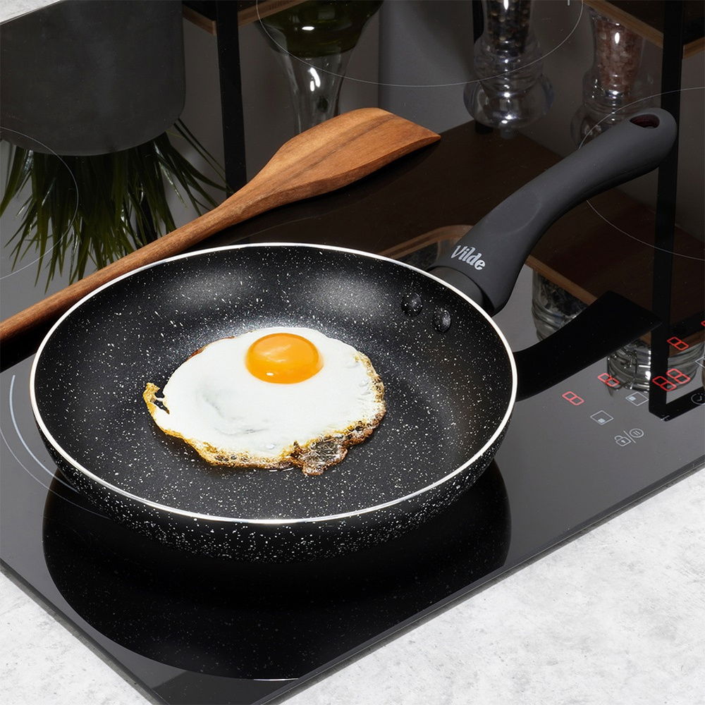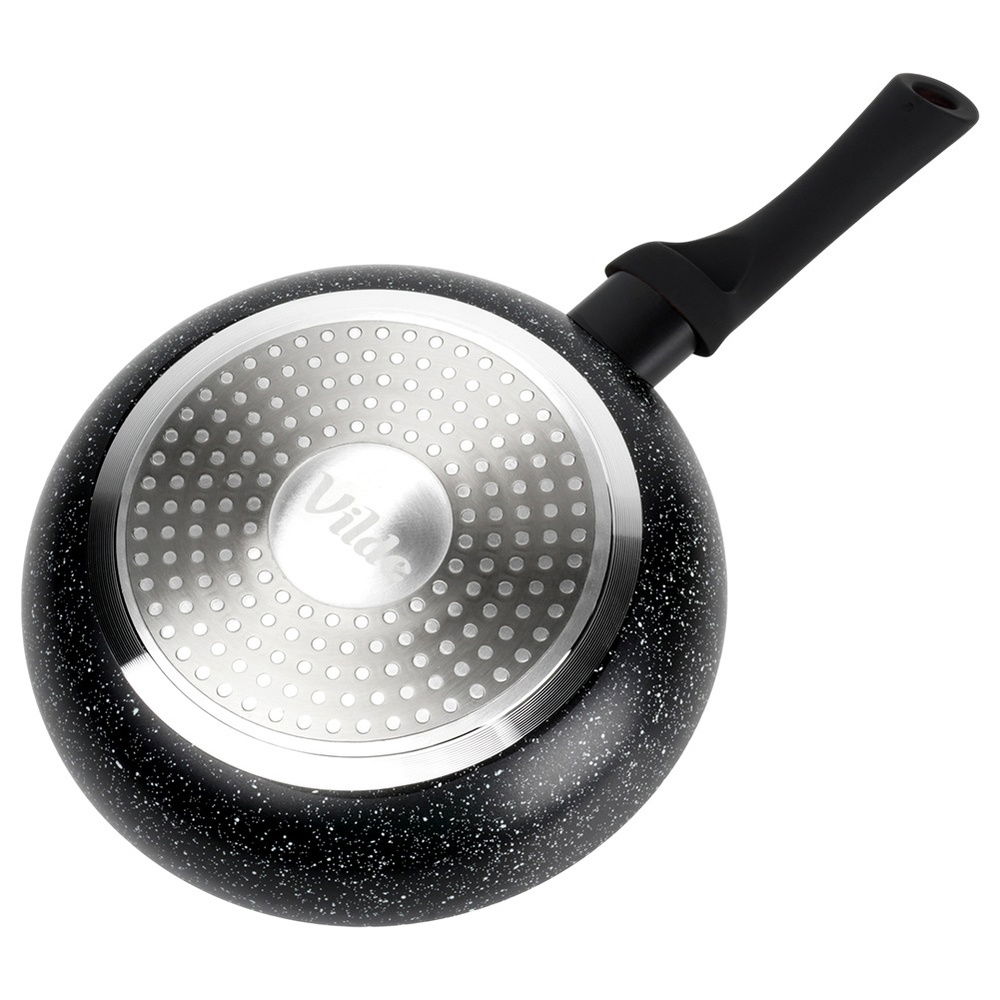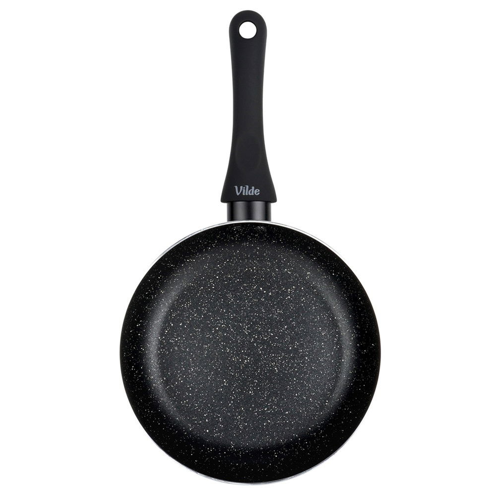Nieprzywierająca powłoka granitowa - Patelnia wykonana z aluminium z nieprzywierającą powłoką granitową w czarnym kolorze. Powierzchnia nieprzywierająca umożliwia przygotowywanie zdrowych i smacznych posiłków z minimalną ilością tłuszczu. Wyposażona w uchwyt wykonany z najwyższej jakości, wytrzymałego tworzywa w czarnym kolorze.