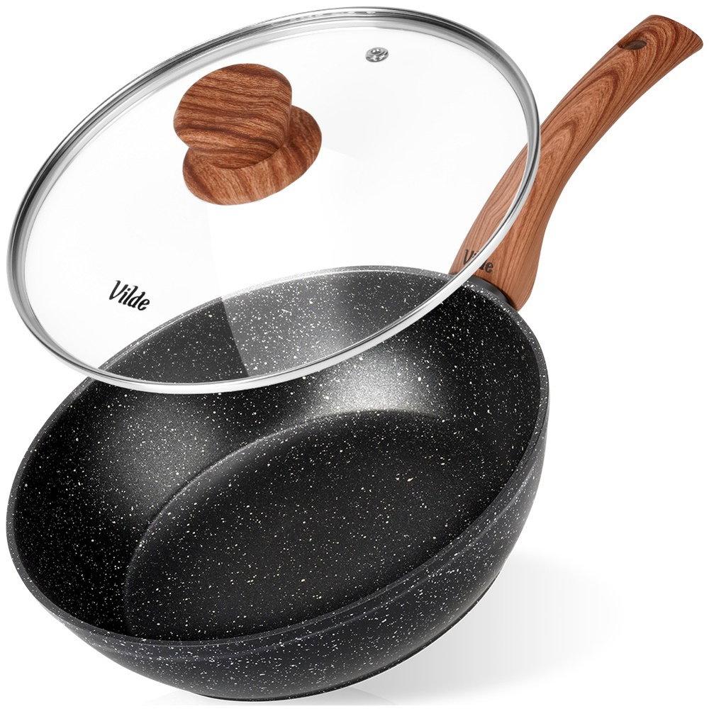 Patelnia Granitowa do Smażenia Duszenia Głęboka z Pokrywką 24 cm 2,2L