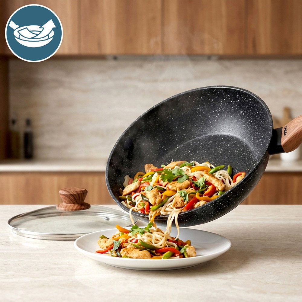 UNIWERSALNE ZASTOSOWANIE - Głęboka patelnia doskonale sprawdzi się do smażenia, duszenia, zapiekania i przygotowywania różnorodnych potraw. Idealna do dań jednogarnkowych, gulaszy, makaronów, zapiekanek, warzyw oraz mięsa. Doskonała do codziennego gotowania w kuchni, a dzięki eleganckiemu wyglądowi umożliwia również bezpośrednie serwowanie potraw na stole.