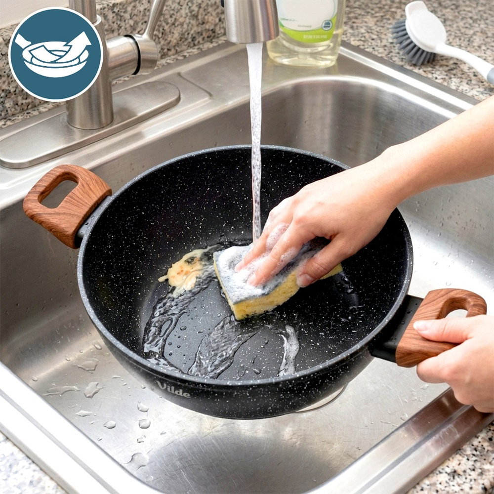 ODPOWIEDNIA DO WSZYSTKICH KUCHENEK ORAZ DO ZMYWARKI - Przystosowana do kuchenek indukcyjnych, gazowych, elektrycznych oraz ceramicznych. Patelnię wyczyścimy w wygodny sposób, gdyż nadaje się do mycia w zmywarce do naczyń.