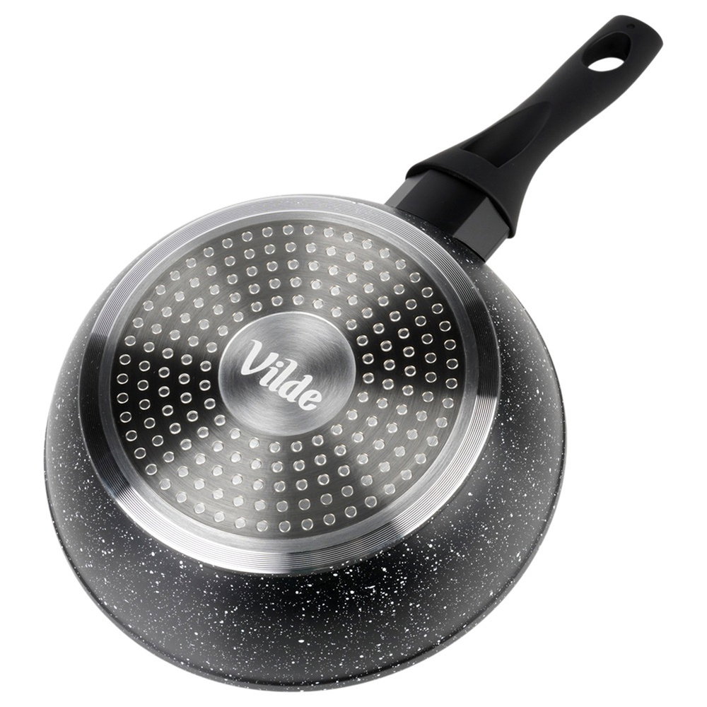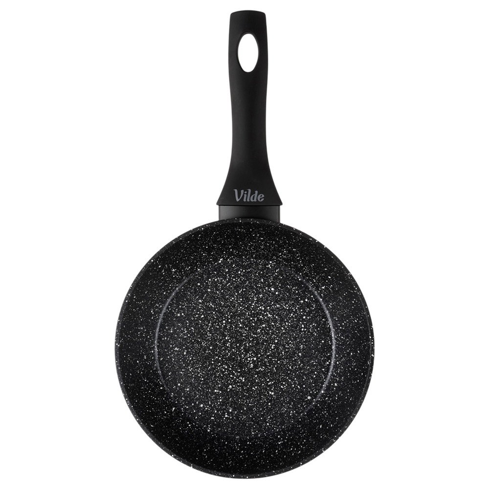 NIEPRZYWIERAJĄCA POWŁOKA GRANITOWA - Wykonana z odlewu aluminium z nieprzywierającą powłoką granitową, co umożliwi przygotowanie potraw na minimalnej ilości tłuszczu. Uchwyt typu soft touch wykonany z tworzywa w czarnym kolorze.