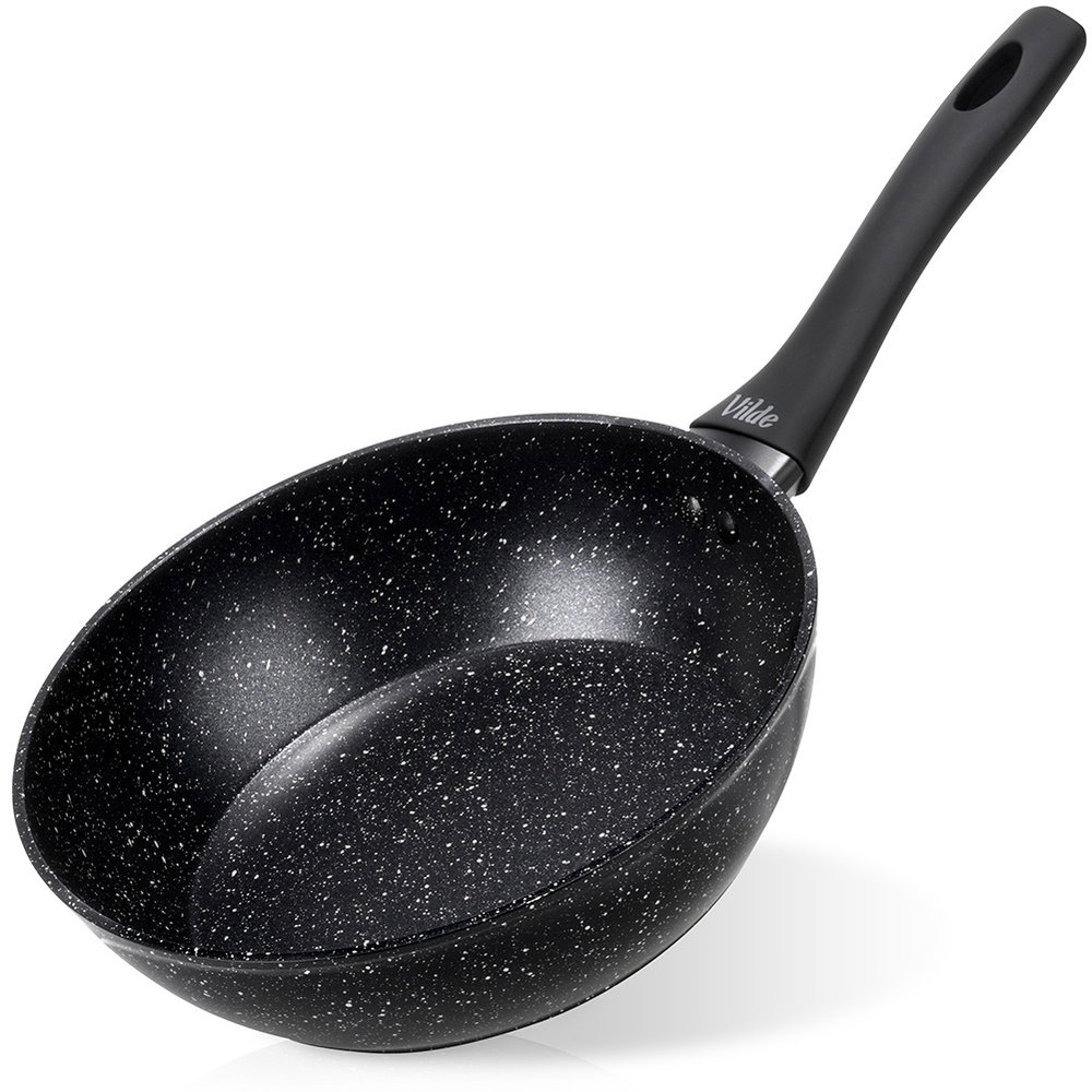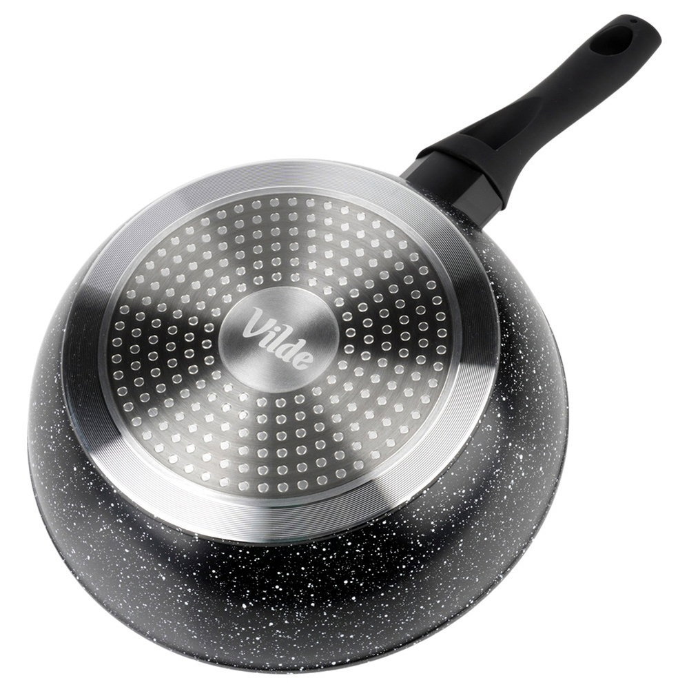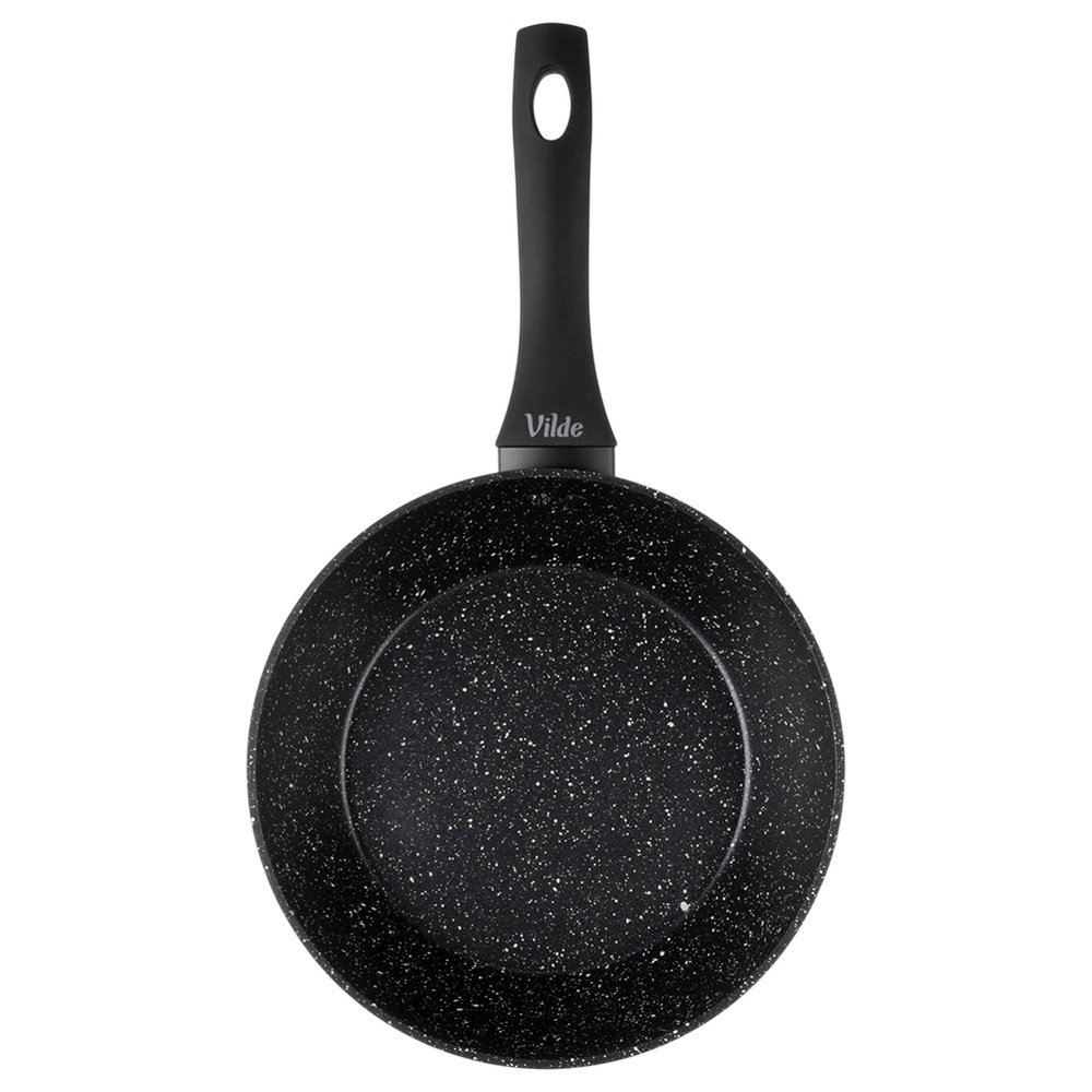 NIEPRZYWIERAJĄCA POWŁOKA GRANITOWA - Wykonana z odlewu aluminium z nieprzywierającą powłoką granitową, co umożliwi przygotowanie potraw na minimalnej ilości tłuszczu. Uchwyt typu soft touch wykonany z tworzywa w czarnym kolorze.
