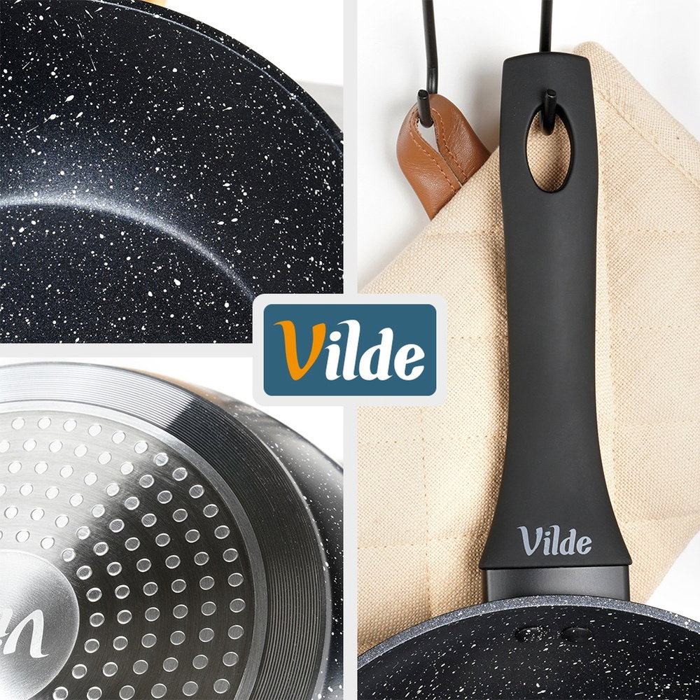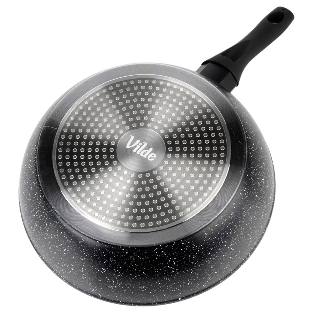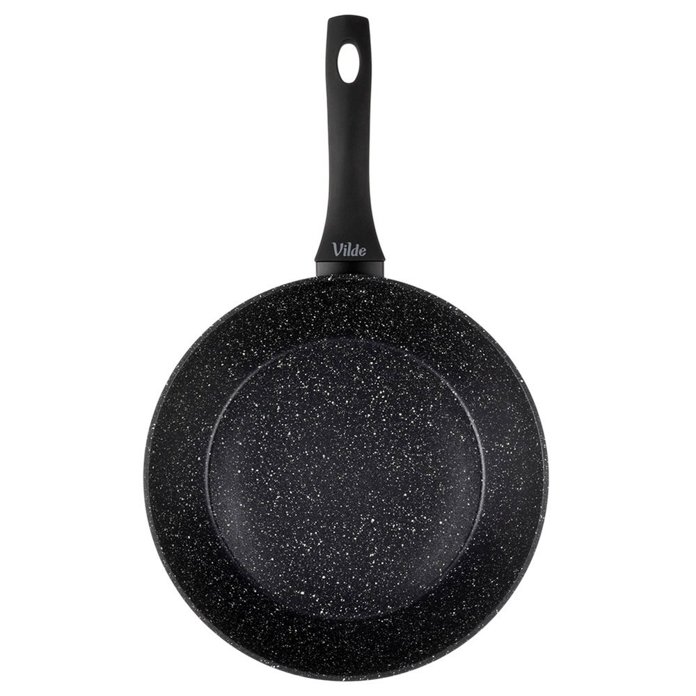 NIEPRZYWIERAJĄCA POWŁOKA GRANITOWA - Wykonana z odlewu aluminium z nieprzywierającą powłoką granitową, co umożliwi przygotowanie potraw na minimalnej ilości tłuszczu. Uchwyt typu soft touch wykonany z tworzywa w czarnym kolorze.