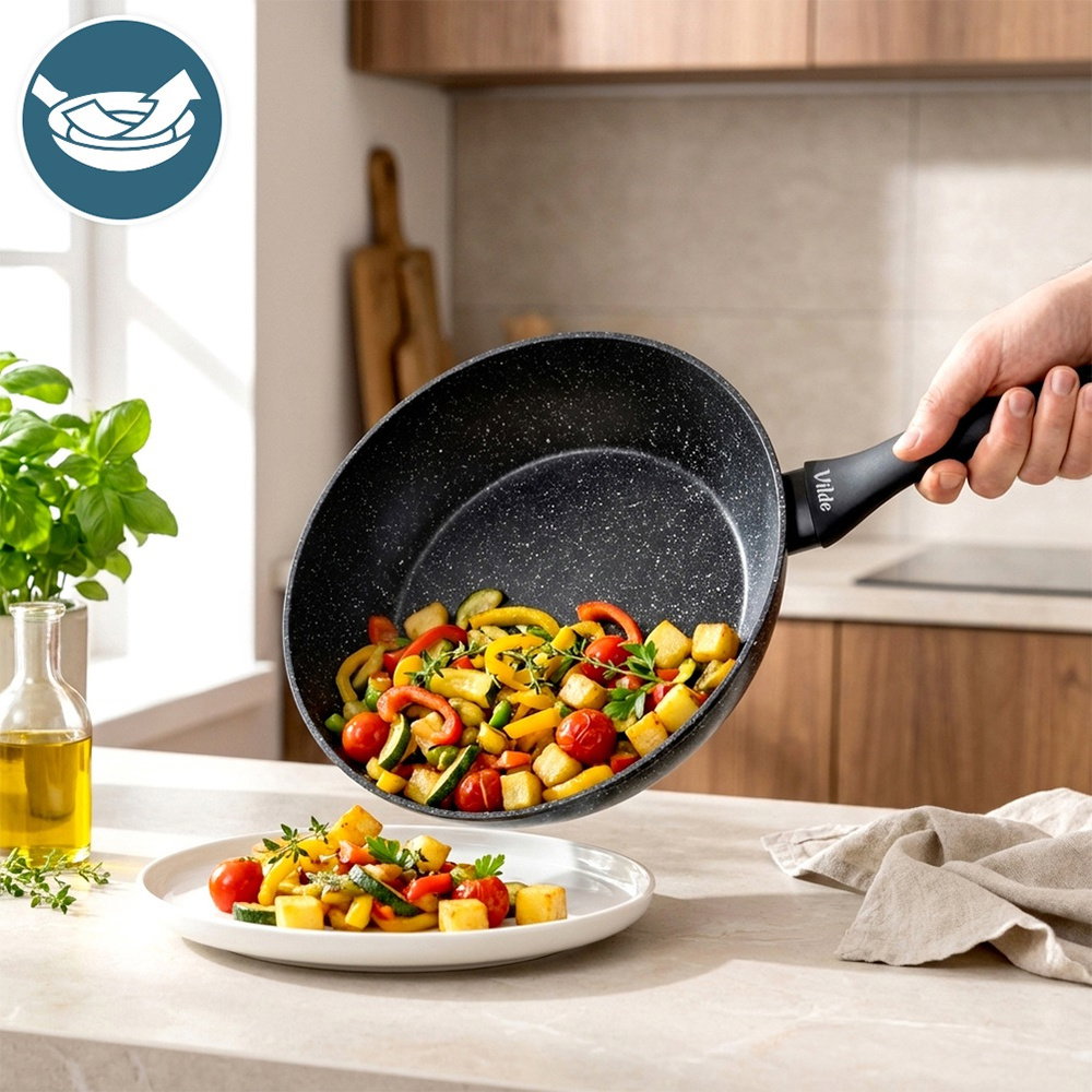 Nieprzywierająca patelnia o wyjątkowym, ponadczasowym wyglądzie. Niezastąpiona w każdej kuchni, ułatwia gotowanie, smażenie i duszenie potraw. Wykonana z najwyższej jakości materiałów, odpowiednio użytkowana posłuży długie lata.
