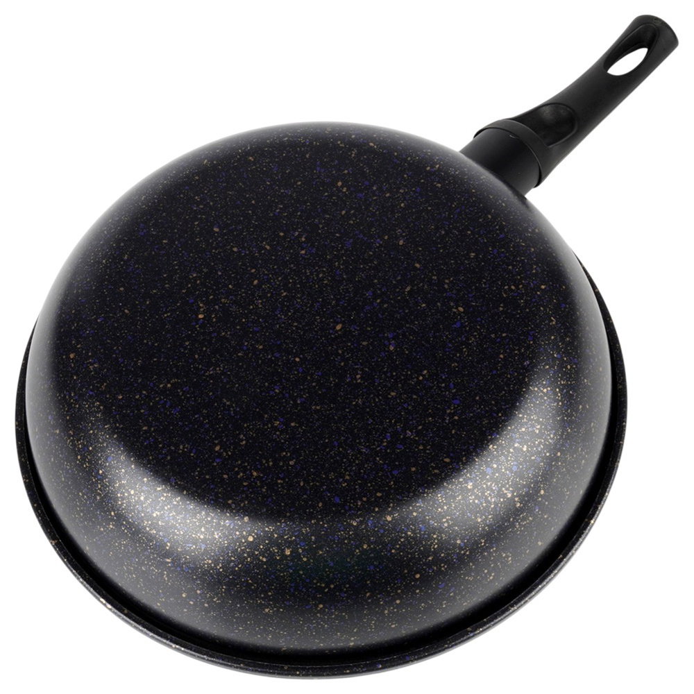 NIEPRZYWIERAJĄCA POWŁOKA GRANITOWA - Patelnia wykonana ze stali węglowej z nieprzywierającą powłoką granitową w czarnym kolorze. Powierzchnia nieprzywierająca umożliwia przygotowywanie zdrowych i smacznych posiłków z minimalną ilością tłuszczu. Uchwyt wykonany z tworzywa w czarnym kolorze.