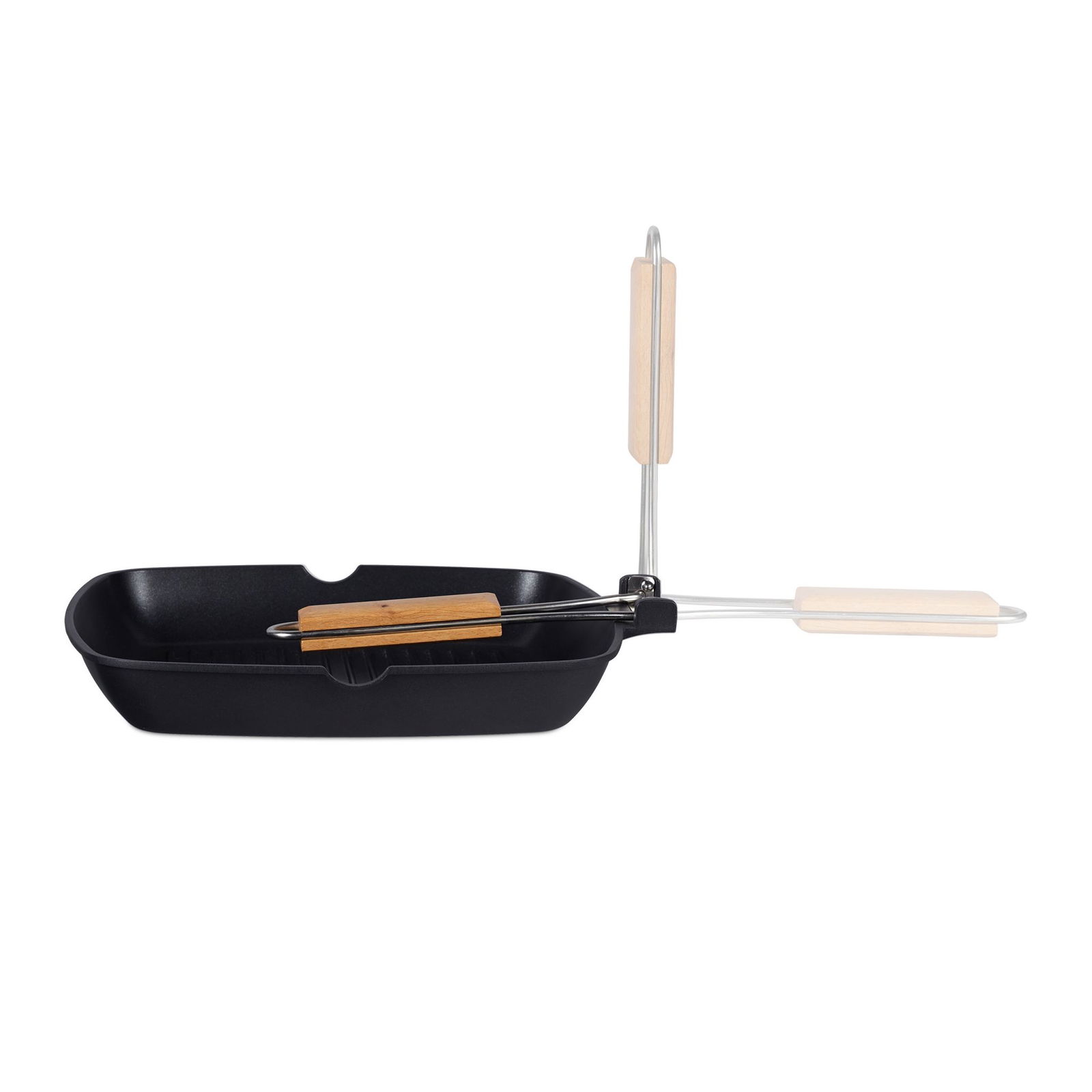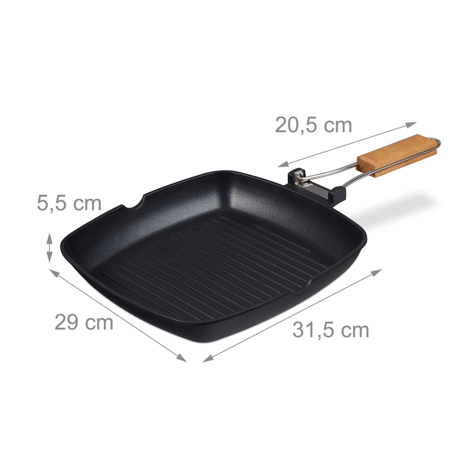 Nasza patelnia grillowa pozwoli Ci przyrządzić mięso, rybę, tosty francuskie, jajecznicę i wiele innych smakowitych potraw na grillu lub kuchence. Dzięki rowkom na dnie tej patelni do smażenia zarówno olej, jak i ściekający tłuszcz nie mają bezpośredniego kontaktu z jedzeniem. Nieprzywierająca powłoka pozwala używać mniej tłuszczu podczas smażenia oraz ułatwia zmywanie tej patelni do grillowania. Drewniany uchwyt można złożyć, odkręcić lub wykorzystać do powieszenia patelni w kuchni.