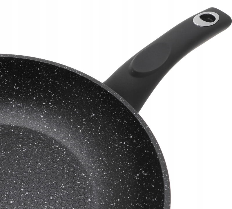 Patelnia aluminiowa z powłoką marmurową pozwala na bezpieczne przyrządzanie chrupiących, aromatycznych i zdrowych potraw.