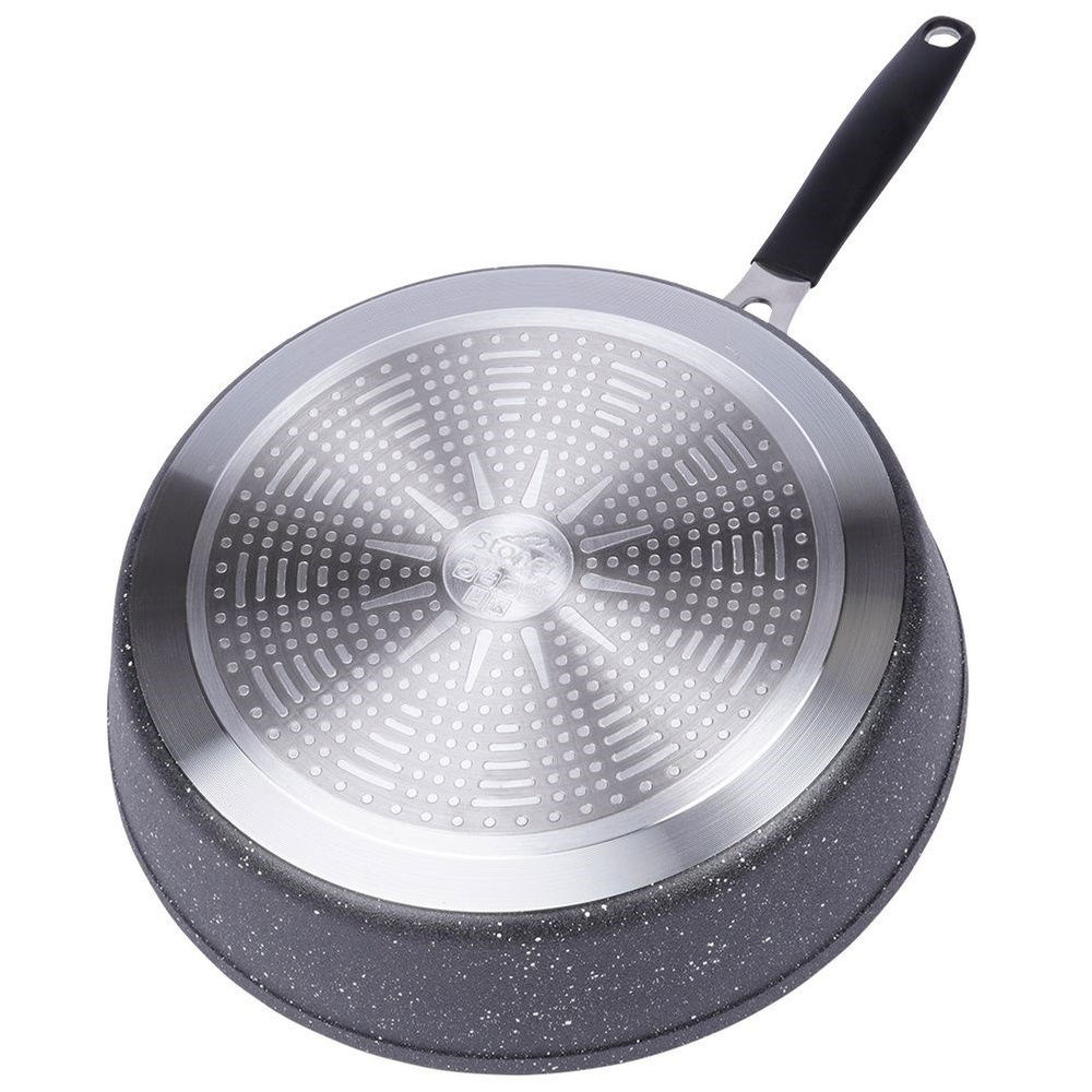 Patelnia granitowa wykonana z najwyższej jakości materiałów, nie zawiera żadnych toksycznych związków - PFOA, PTFE. Można stosować na wszystkich typach kuchenek wraz z indykcją. Patelnia zaskoczy Cię swoimi unikalnymi właściwościami. Jej chropowata powierzchnia jest idealna do steków i wielu innych przysmaków. Dzięki temu olej jest lepiej rozprowadzony pod potrawami, składniki są równomiernie przypieczone, nie palą się.