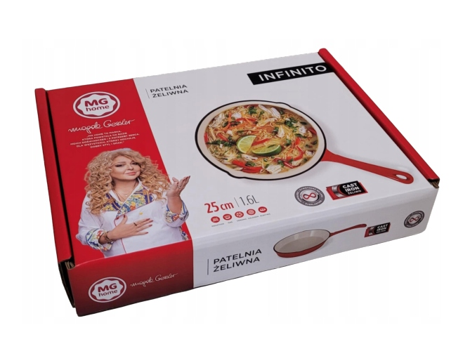 Patelnie żeliwne firmy MG Home wytwarzane są z najwyższej jakości żeliwa z wewnętrzną powłoką emalii. Nadaje się idealnie do smażenia lub zapiekania w piekarniku. Doskonale kumulują i rozprowadzają ciepło, dzięki czemu gotowane na nich posiłki są pełne aromatów i zachowują odpowiednią temperaturę przez długi czas.