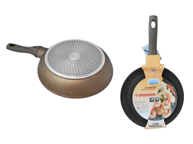 Tiross TS1262 to wysokiej jakości patelnia z powłoką diamentową, o średnicy 24 centymetrów. Patelnię te cechuje bardzo szybka i równomierna dystrybucja ciepła, bezpieczna i długotrwała powłoka nieprzywierająca oraz kompatybilność ze wszystkimi rodzajami kuchenek.