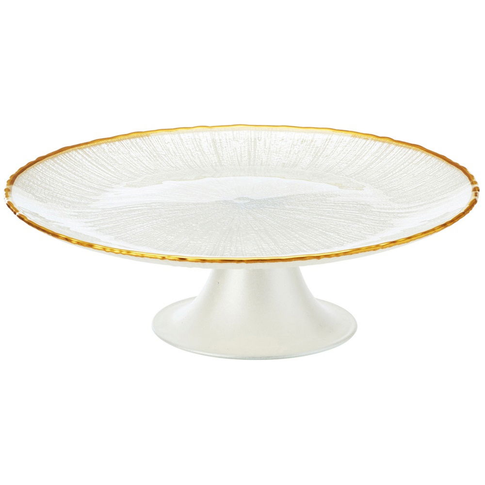 PATERA BIAŁA ZŁOTA SZKLANA NÓŻCE NA TORT CIASTO DESERY PRZEKĄSKI TACA 21 CM