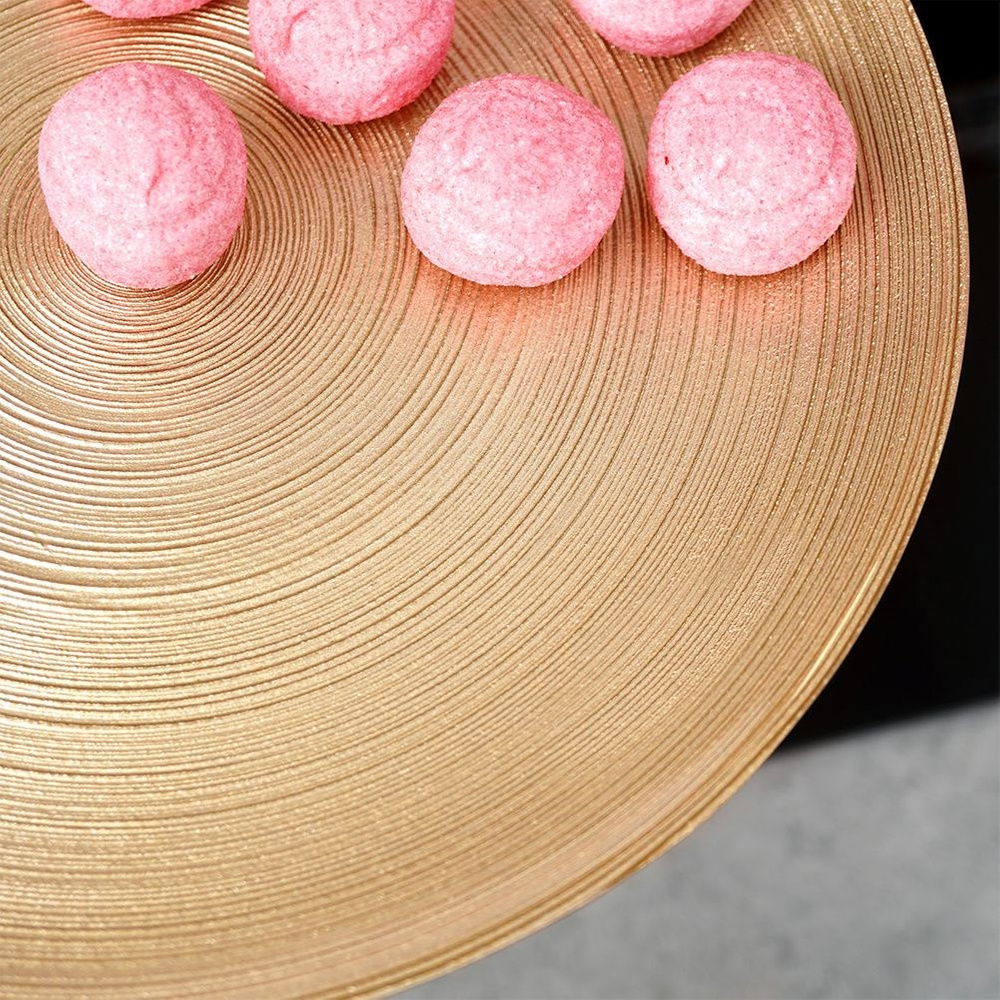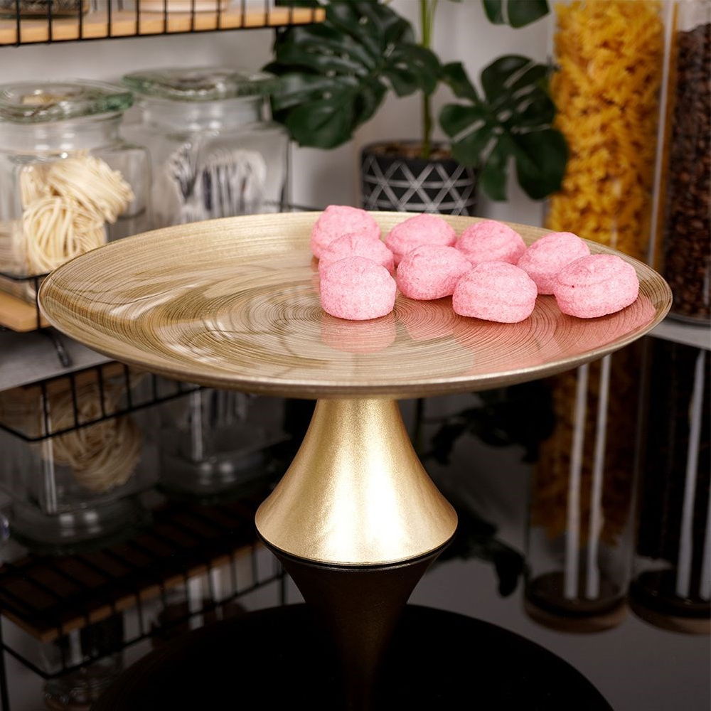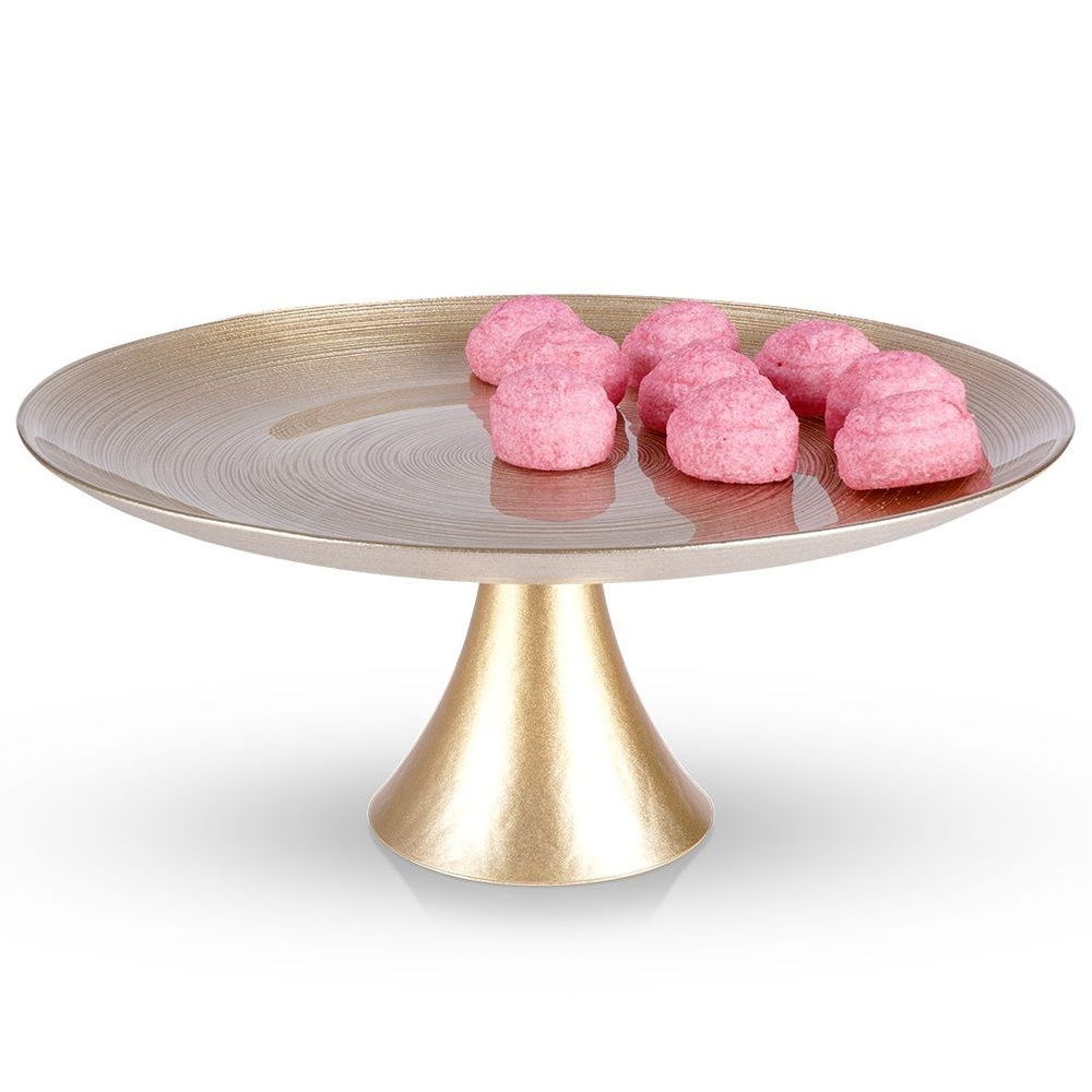 Patera na nóżce idealna na tort, ciasto lub inne słodkości. Posiada piękny, złoty kolor, więc prezentuje się bardzo oryginalnie. Dzięki niej wyeksponujemy przygotowane słodkości. Klasyczny kształt sprawia, że dobrze komponuje się z pozostałą zastawą stołową.
