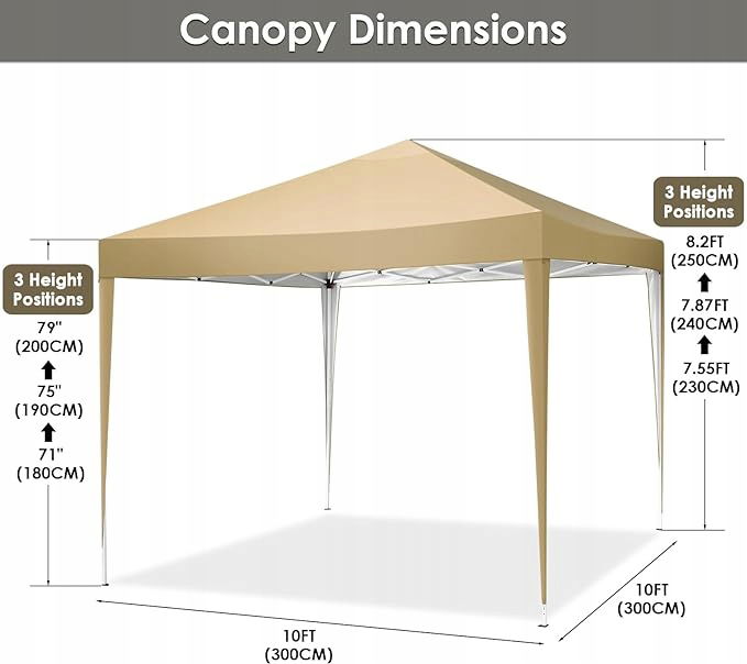 【Regulowana regulacja wysokości】 Pergola ogrodowa 3x3 ma 3 regulowane wysokości: 180/190/200 cm. Możesz dowolnie zmieniać wysokość namiotu z baldachimem.