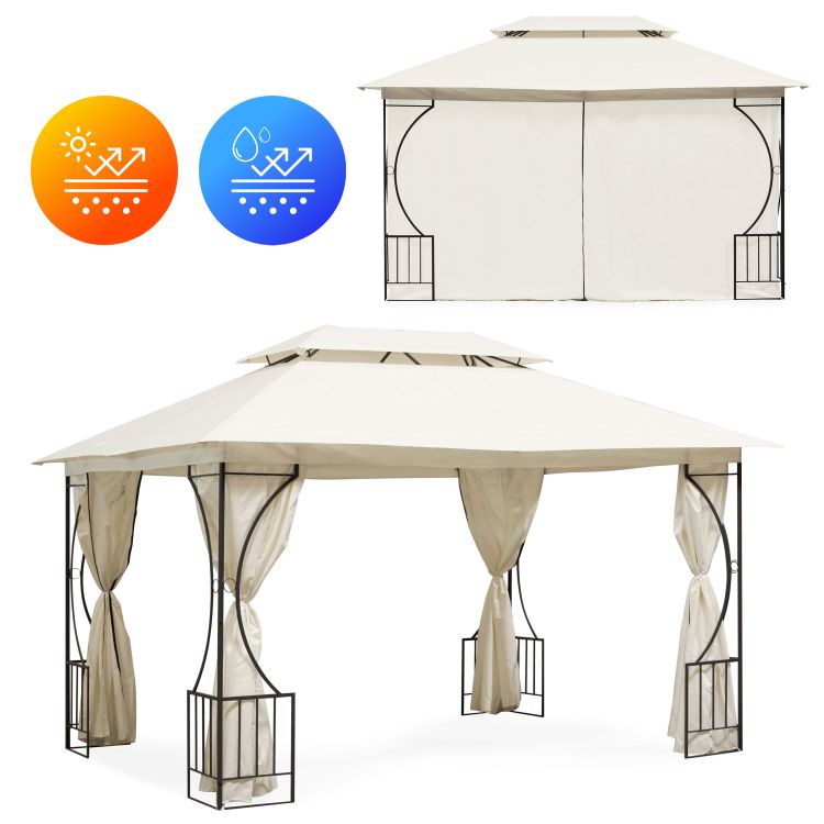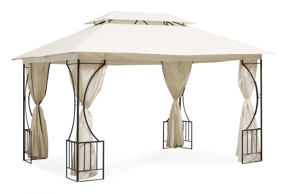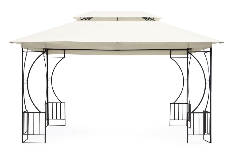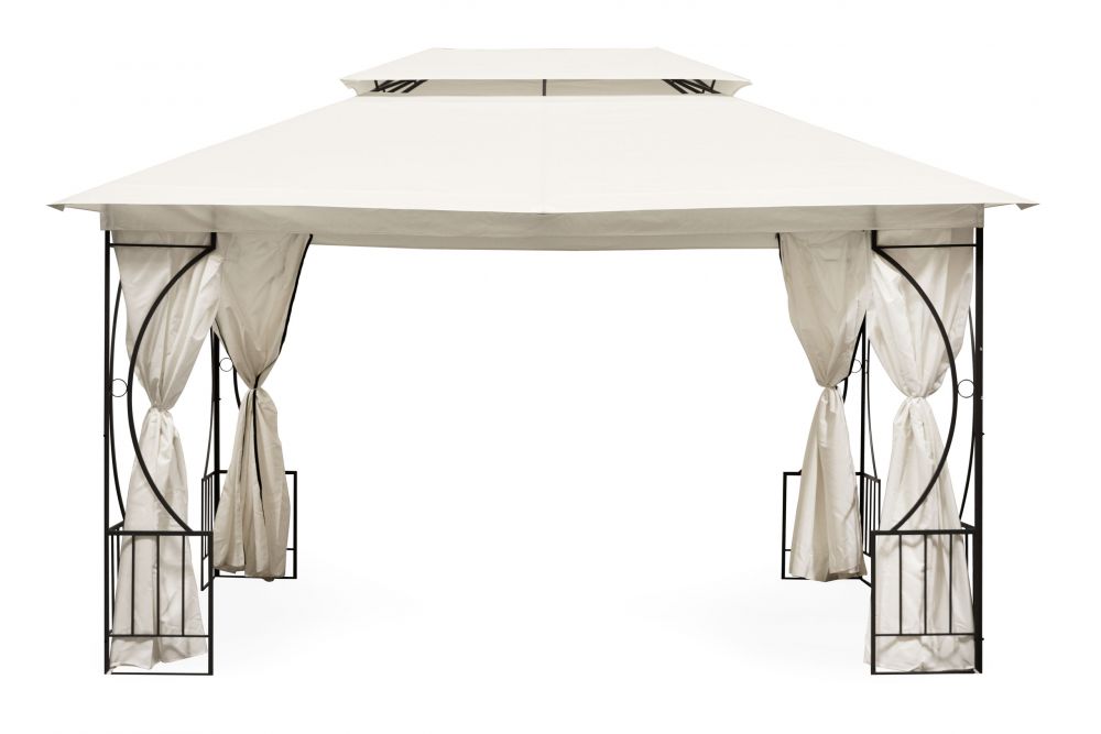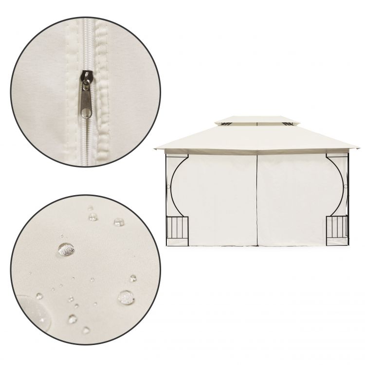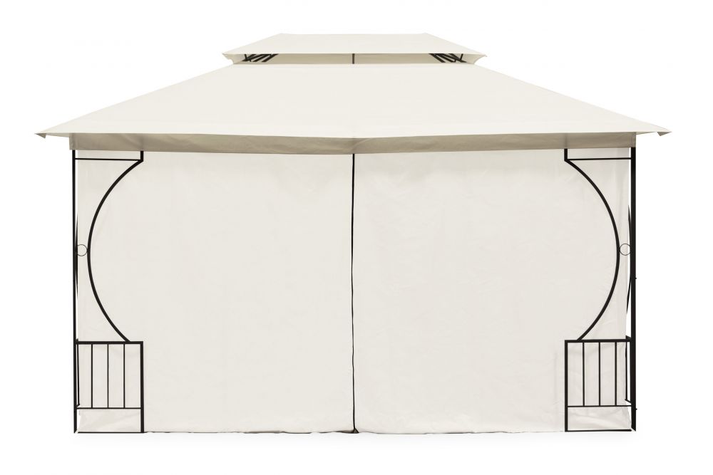 - Zadaszenie oraz ściany wykonano z wytrzymałej oraz odpornej na warunki atmosferyczne tkaniny poliestrowej (180 g/m²) w eleganckim beżowym kolorze