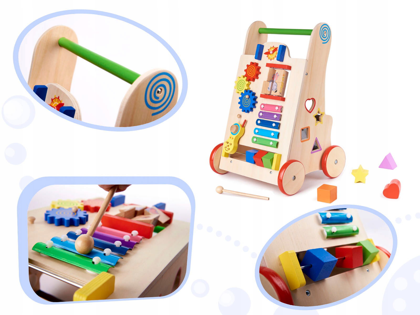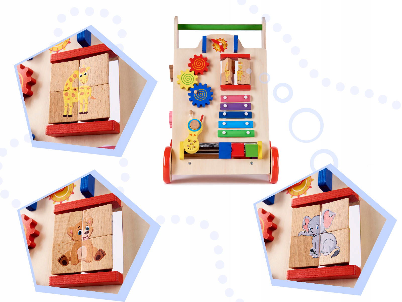 Pchacz chodzik drewniany kostka edukacyjna 6w1