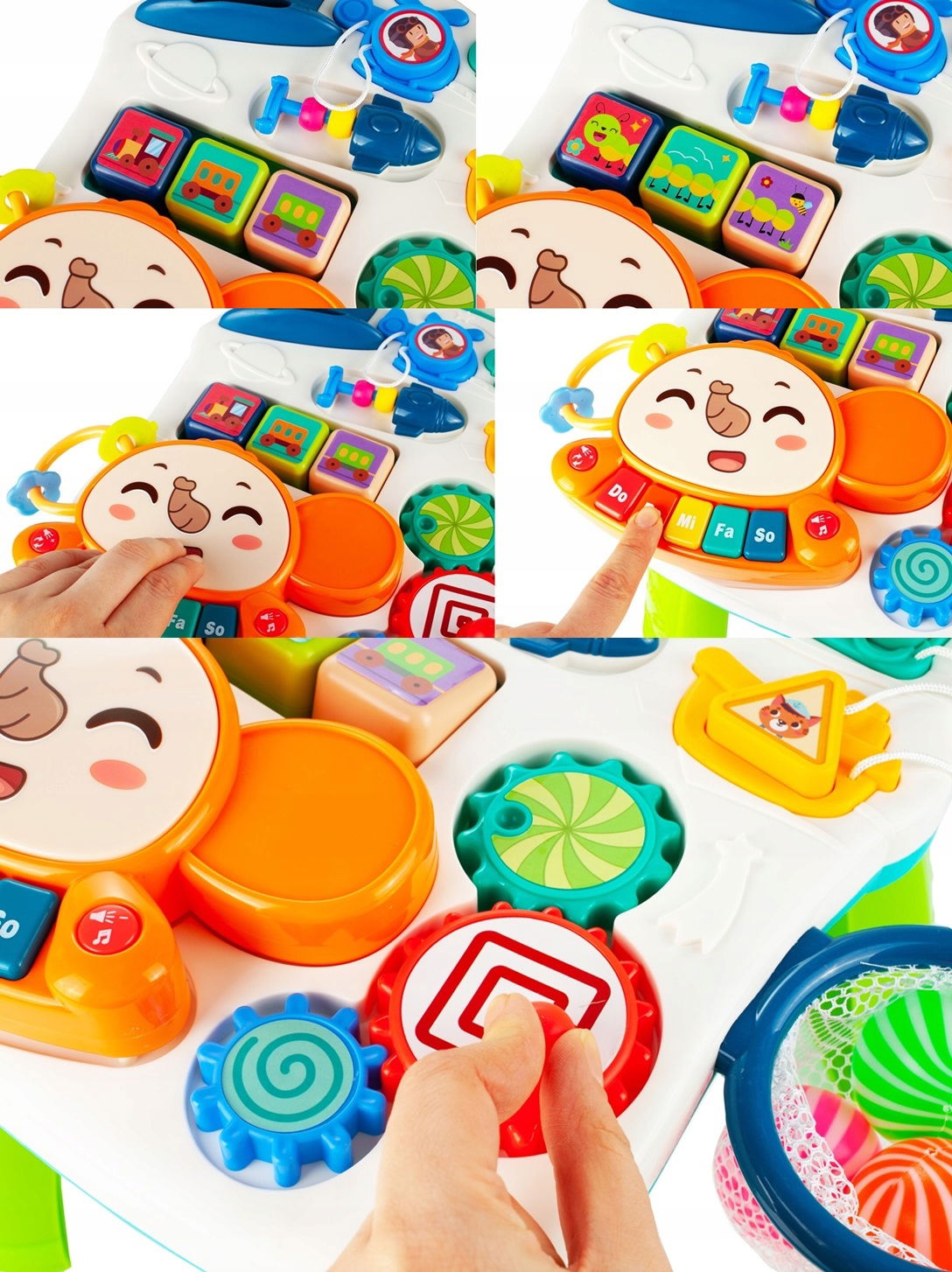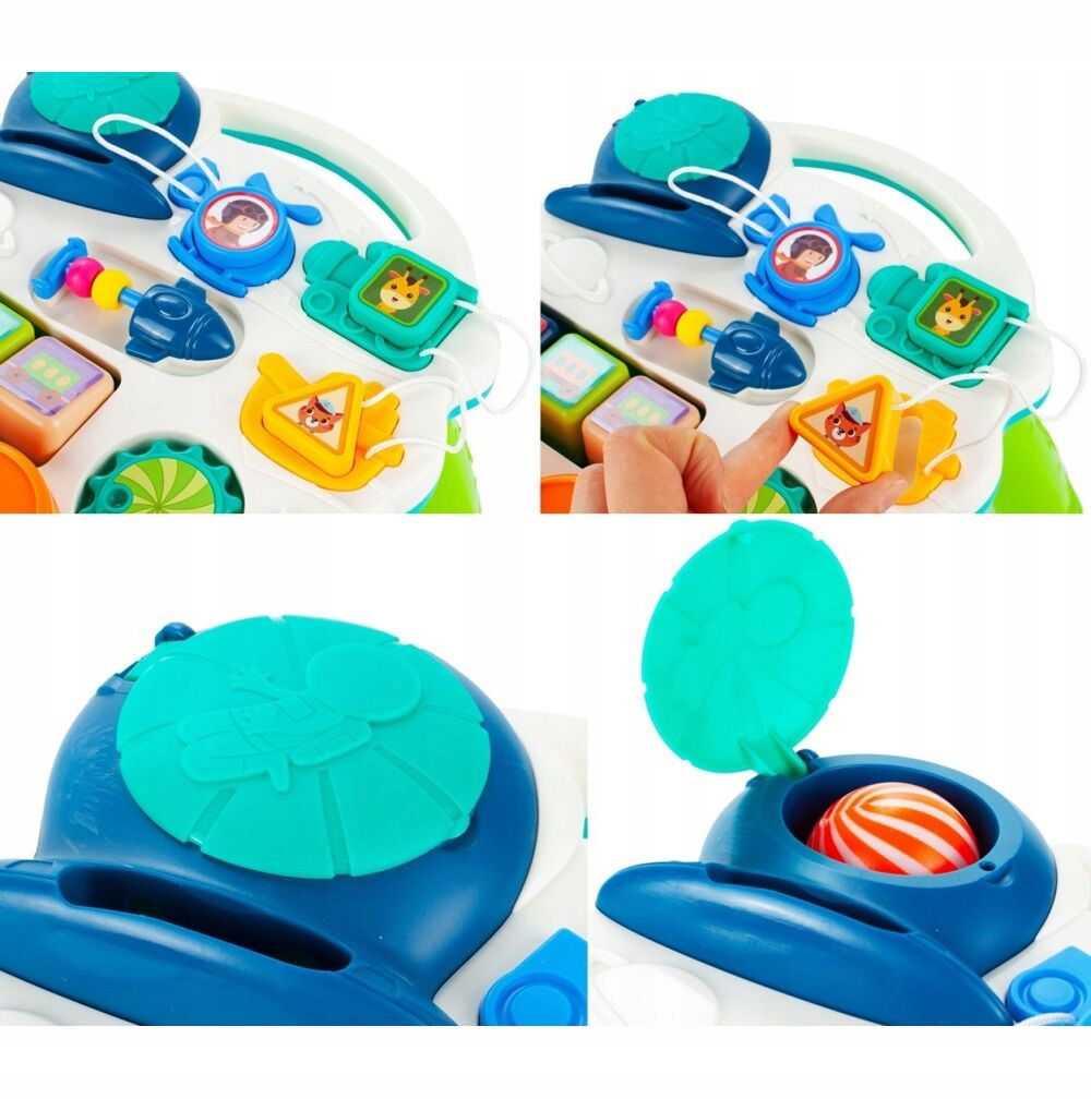 Produkt, który przedstawiamy, łączy w sobie funkcję pchacza, stolika edukacyjnego i panelu do łóżeczka w jednym.