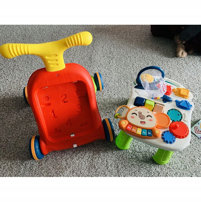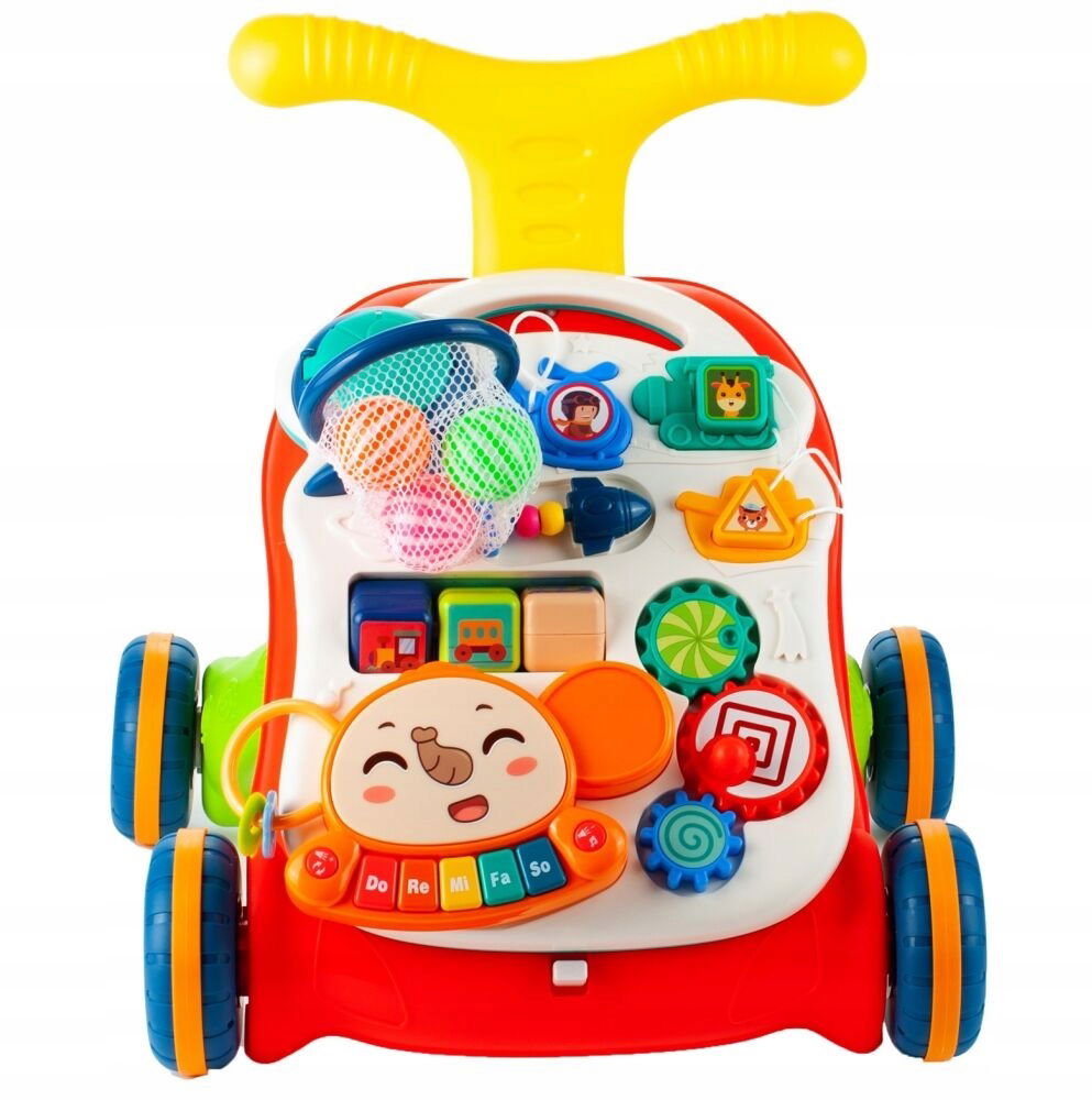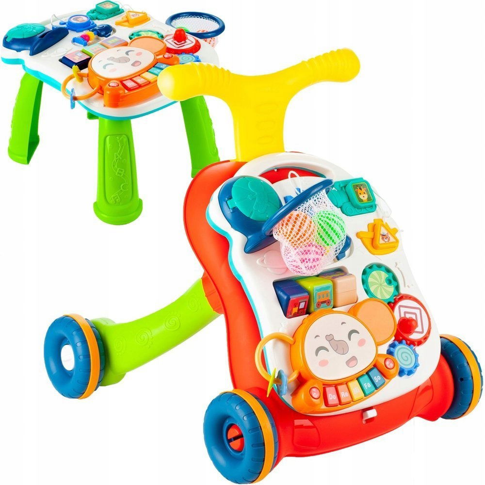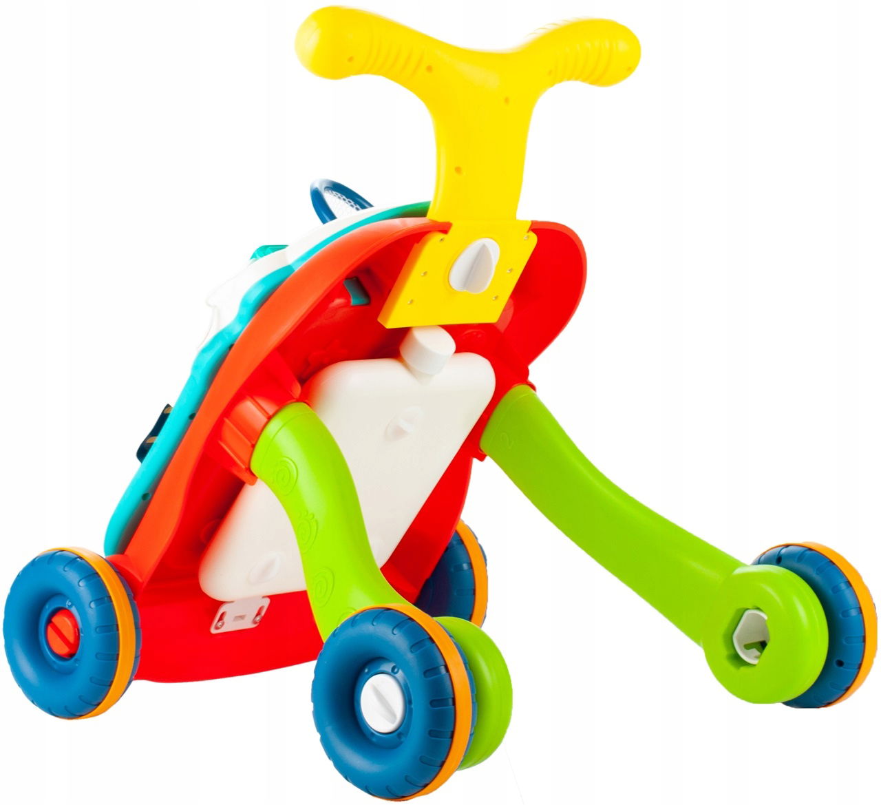 Gdy dziecko znudzi się chodzeniem, pchacz możemy przerobić w szybki sposób w stolik edukacyjny! Nóżki znajdują się w zestawie.