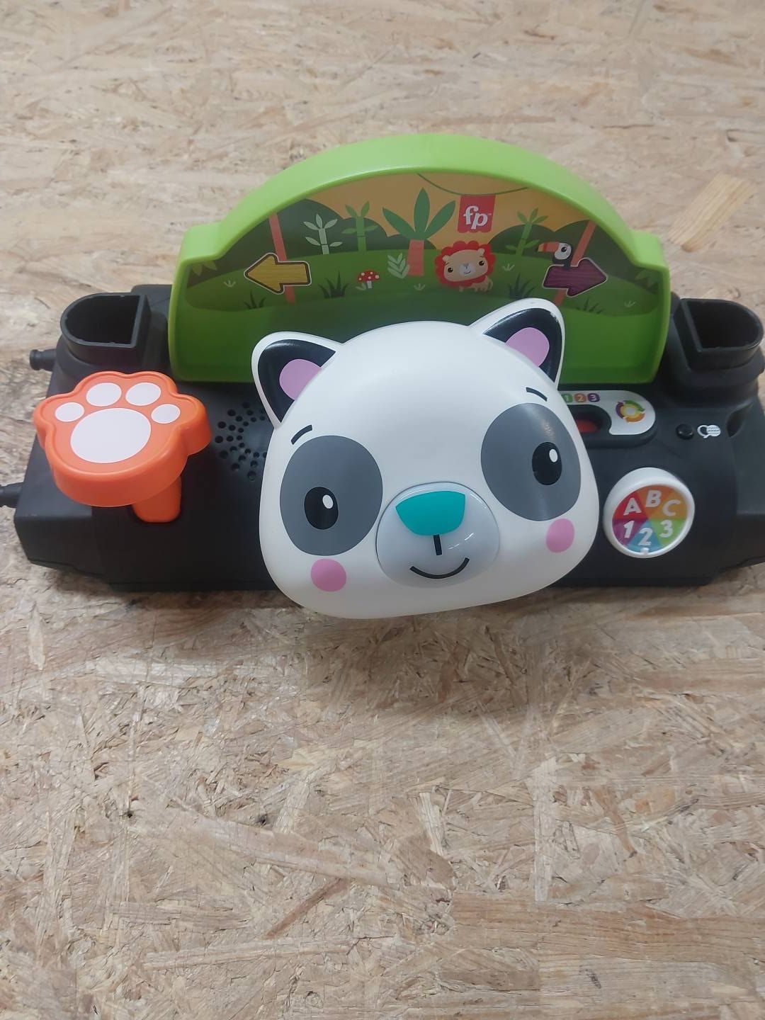 Ponad 10 zajęć pomaga dziecku zająć dziecko, w tym przyjazna buzia pandy z podświetlanym noskiem, przycisk ABC/123 do wciśnięcia, 3 klocki kształtów do sortowania i nie tylko