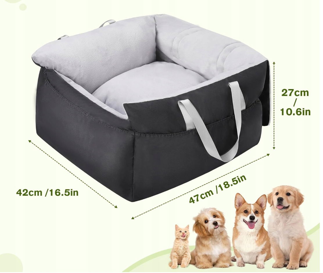 Nasze siedzisko dla psa nadaje się do przednich i tylnych siedzeń większości modeli samochodów, a podwyższona konstrukcja poduszki pozwala psom zobaczyć piękną scenerię na zewnątrz samochodu.