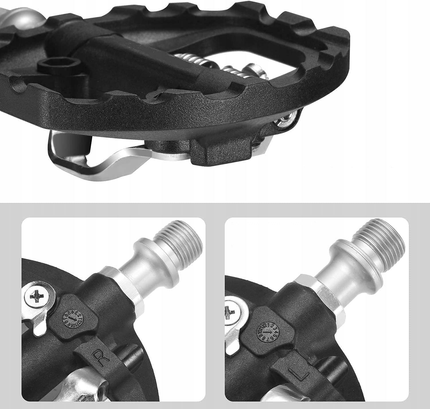 Wielofunkcyjny pedał: Ten pedał to dwustronny pedał rowerowy, jedna strona to konstrukcja SPD Clipless do użytku z butami rowerowymi SPD, druga strona to tradycyjny płaski pedał do użytku ze zwykłymi butami. Możesz go dowolnie zmieniać, jest to bardzo wygodne i praktyczne