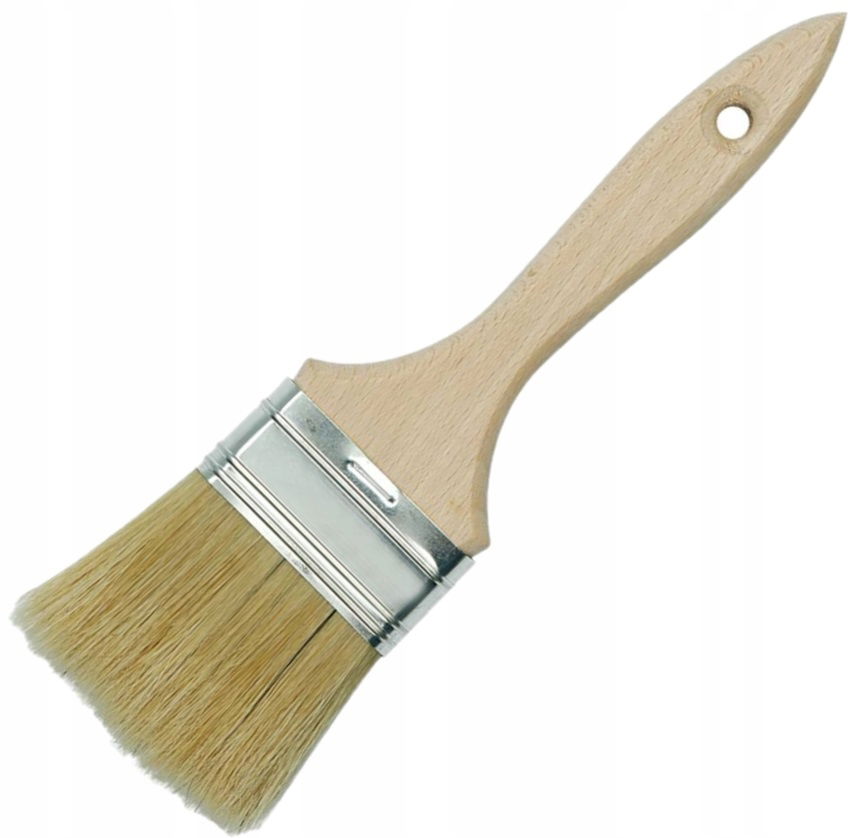 Pędzel płaski typu angielskiego o szerokości 63 mm z naturalnego włosia o współczynniku TOPS 60. Przeznaczony do prac malarskich, do wszystkich rodzajów farb oraz impregnatów.