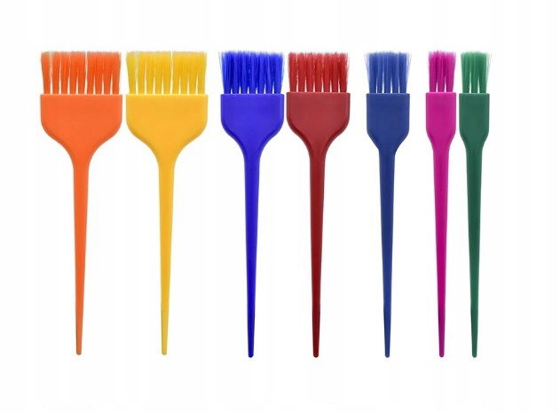 Profesjonalny zestaw kolorowych pędzelków fryzjerskich do nakładania farby, rozjaśniacza itp. W zestawie znajduje się 7 pędzelków fryzjerskich o różnej szerokości włosia.