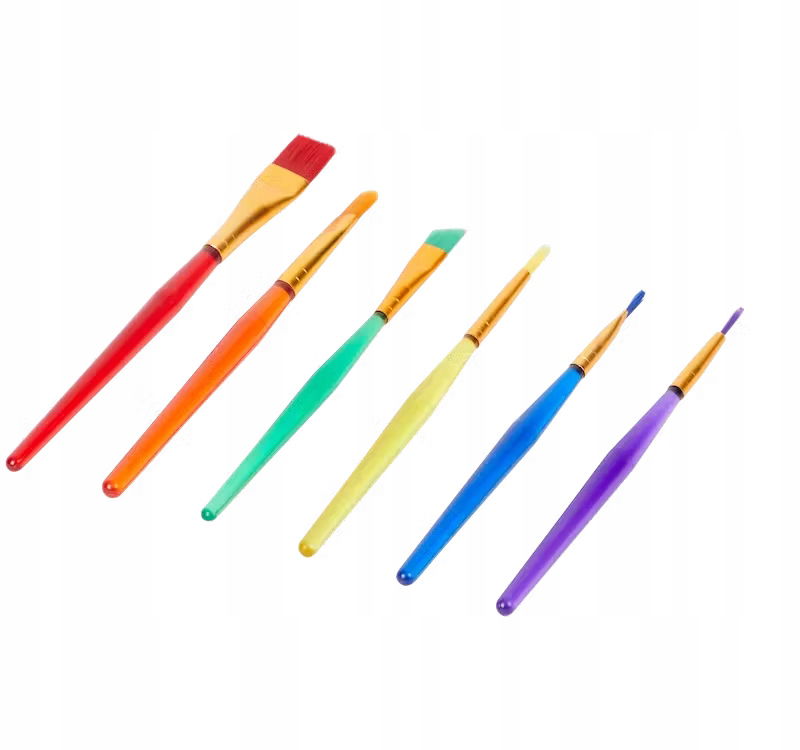 Zestaw artystyczny zawierający 6 pędzli w różnych kształtach i rozmiarach, który ułatwi twórczość artystyczną.