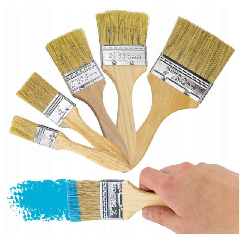 Praktyczny zestaw pędzli malarskich przeznaczony do różnorodnych prac malarskich i dekoracyjnych. Pędzle o różnych szerokościach pozwalają na precyzyjne malowanie zarówno detali, jak i większych powierzchni. Ergonomiczne uchwyty zapewniają wygodę i pewny chwyt podczas pracy.