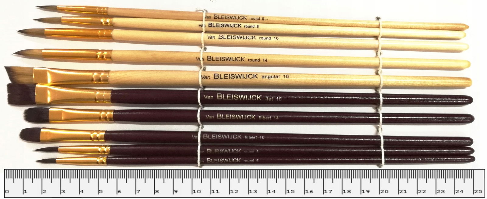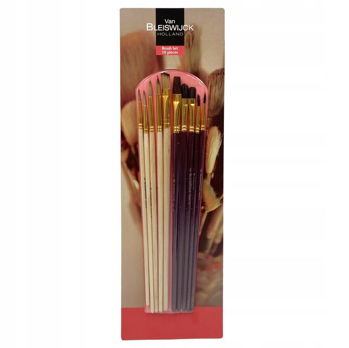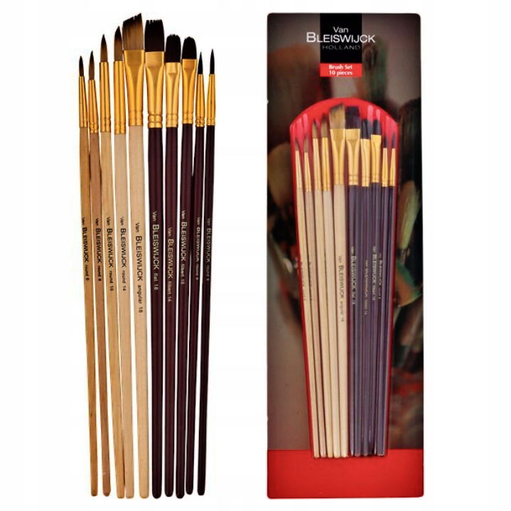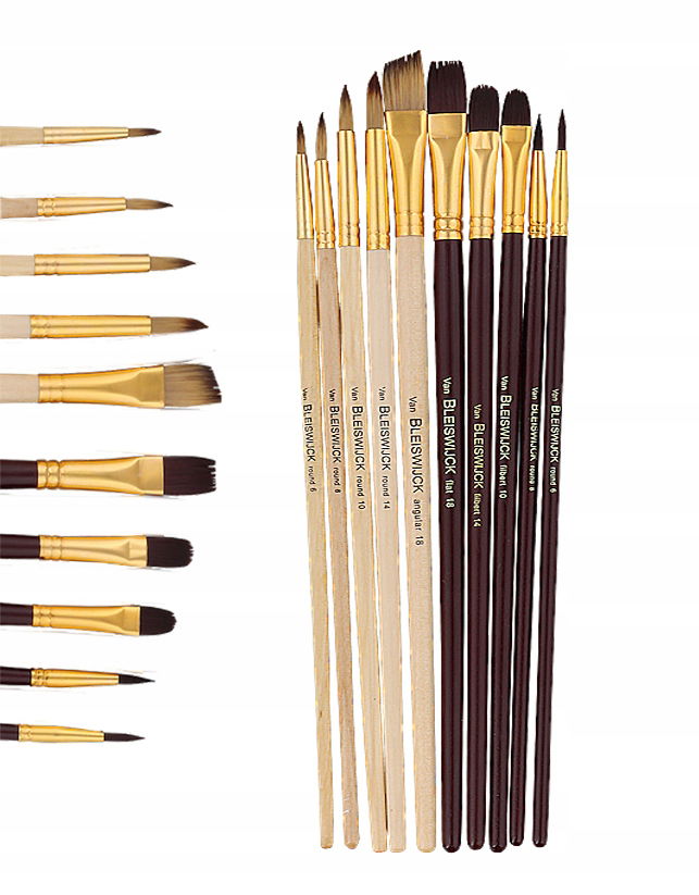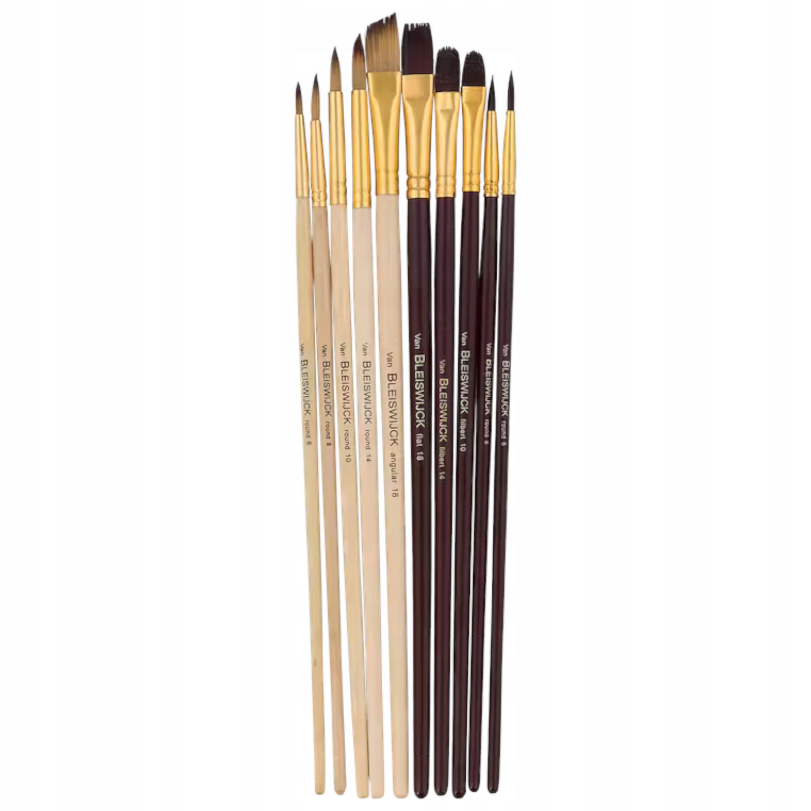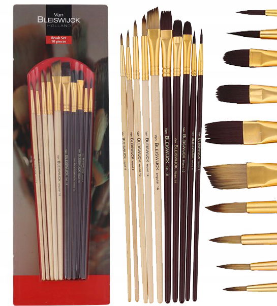 PĘDZLE PĘDZELKI SYNTETYCZNE WŁOSIE OKRAGŁE I PŁASKIE Van Bleiswijck 10 szt