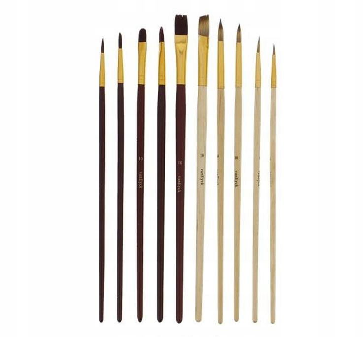 ZESTAW PROFESJONALNYCH PĘDZLI MALARSKICH -- 10 SZTUK