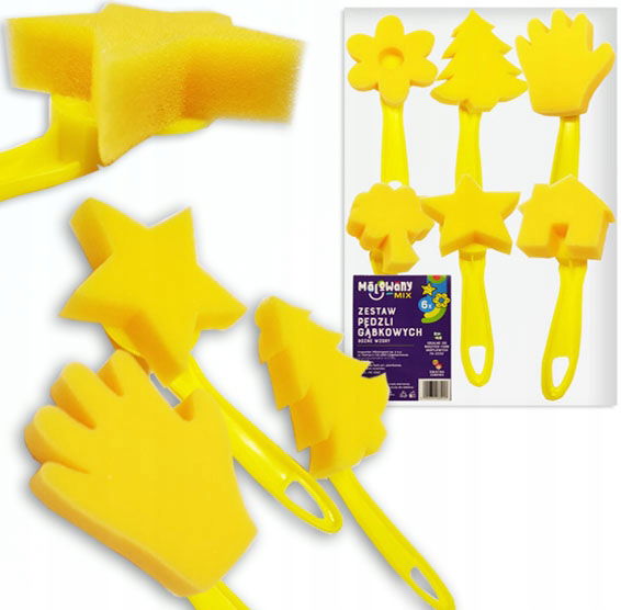 PĘDZLE PIANKOWE, gąbkowe do farb, 6 sztuk, MIX wzorów