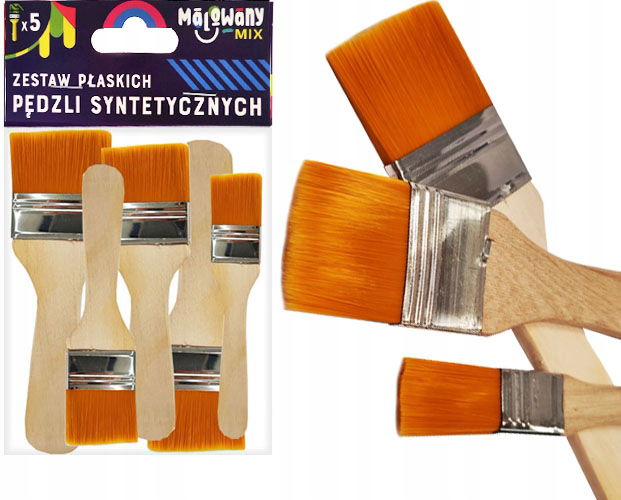 PĘDZLE PŁASKIE do farb artystycznych, 5 szt. (rozmiary 2-6), NYLON