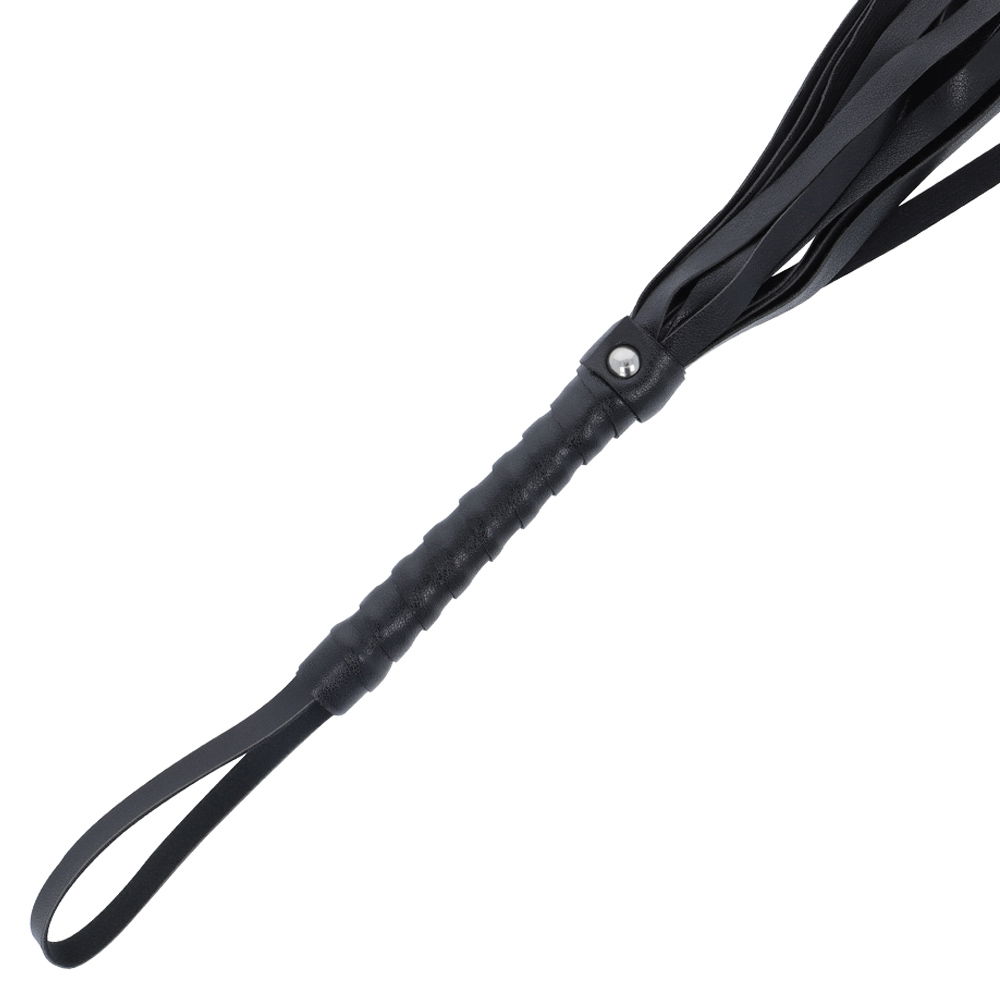 Czarny pejcz, stabilny uchwyt z licznymi paseczkami - Black Flogger 45 cm.