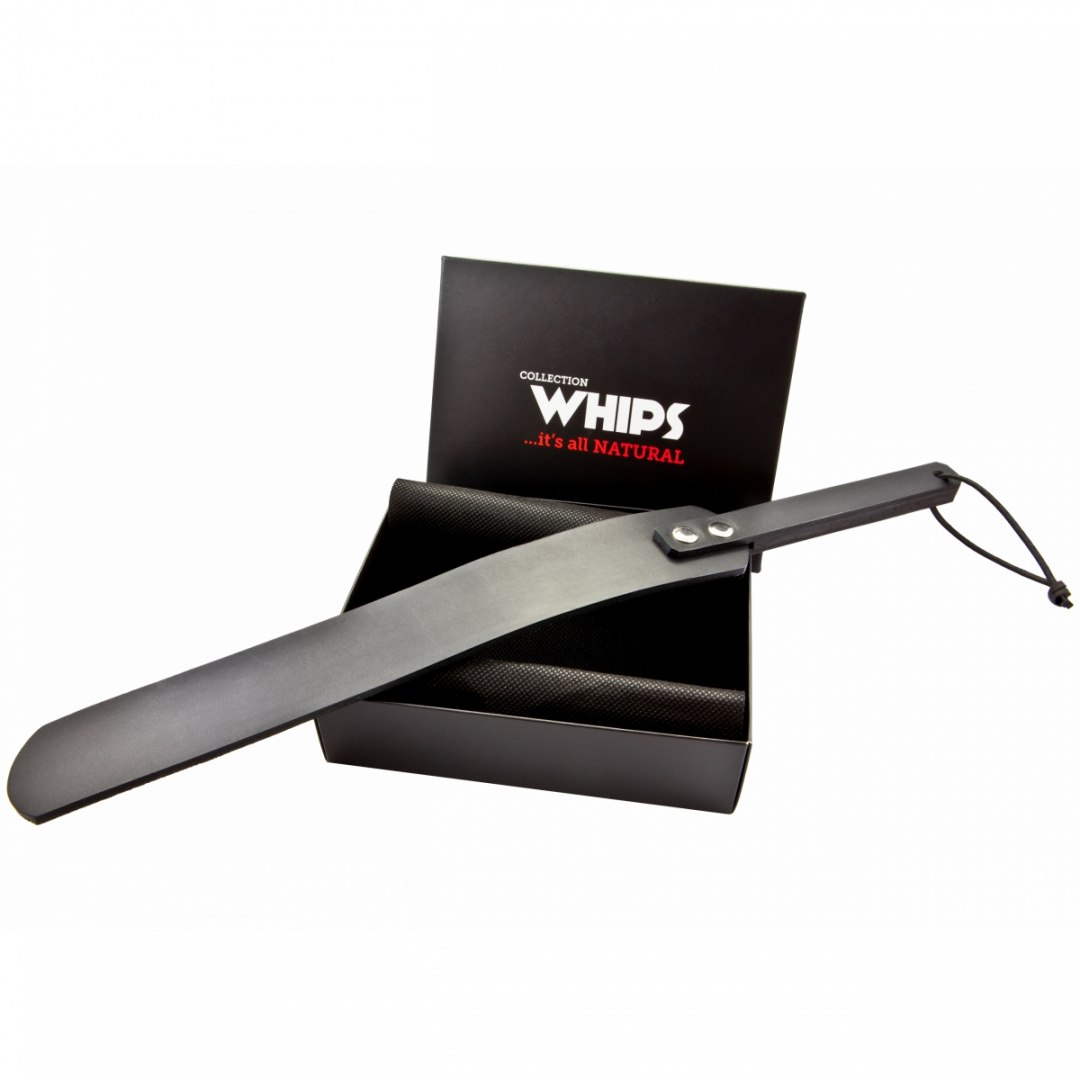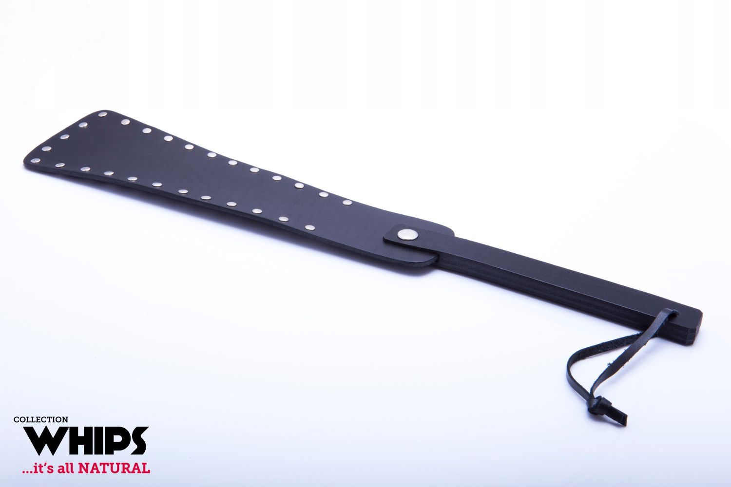 Kolekcja WHIPS została stworzona przez polskich rzemieślników z ponad 30 letnim doświadczeniem. Dzięki ręcznej pracy i dbałości o każdy detal, gwarantujemy najwyższą jakość oferowanych produktów. Do produkcji używamy naturalnych skór bydlęcych o najwyższej jakości, pochodzących wyłącznie z polskich garbarni. Końcowy produkt jest bardzo przyjemny w dotyku, nie posiada ostrych krawędzi i nie powoduje podrażnień oraz odznacza się ekscytującym zapachem prawdziwej, naturalnej skóry. Kolekcja WHIPS została stworzona z myślą o klientach, ceniących sobie najwyższą jakość produktów.Długość całkowita: 41,5 cmDługość języka: 25,5 cmDługość rączki: 16 cmSzerokość języka: 5-8 cm