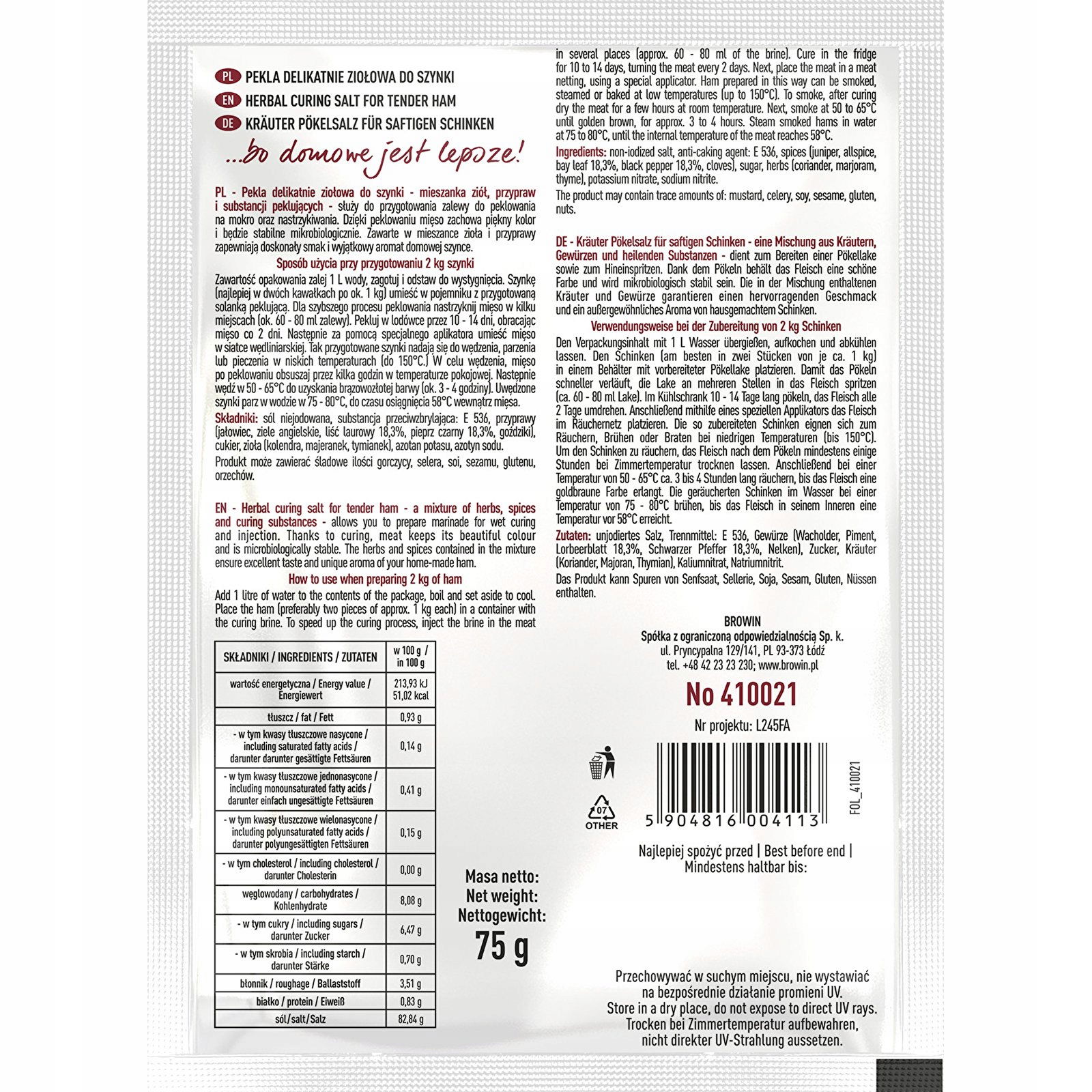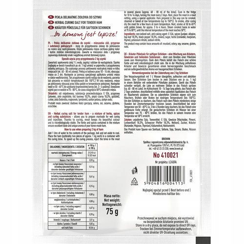 - Wydajne opakowanie - 75 g peklosoli wystarczy Ci na przygotowanie aż 2 kg szynki.
