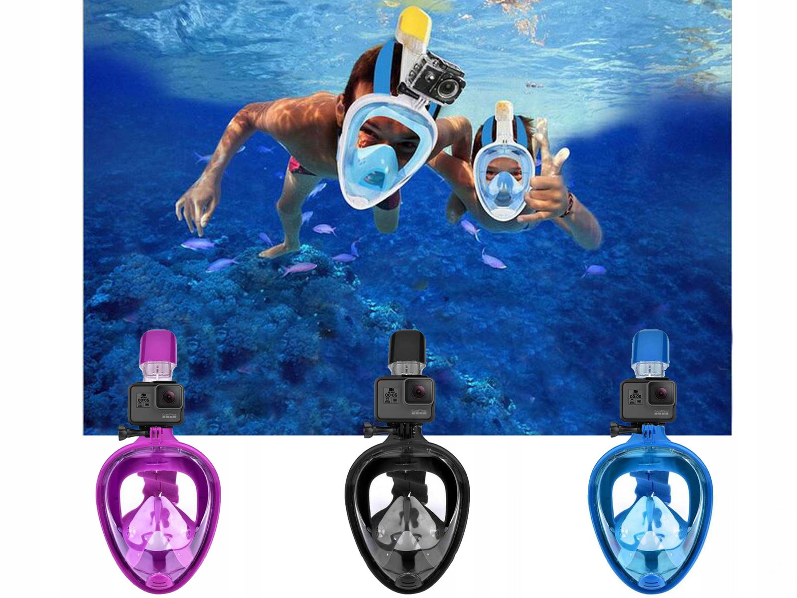 - Typ: Pełnotwarzowa maska do snorkelingu