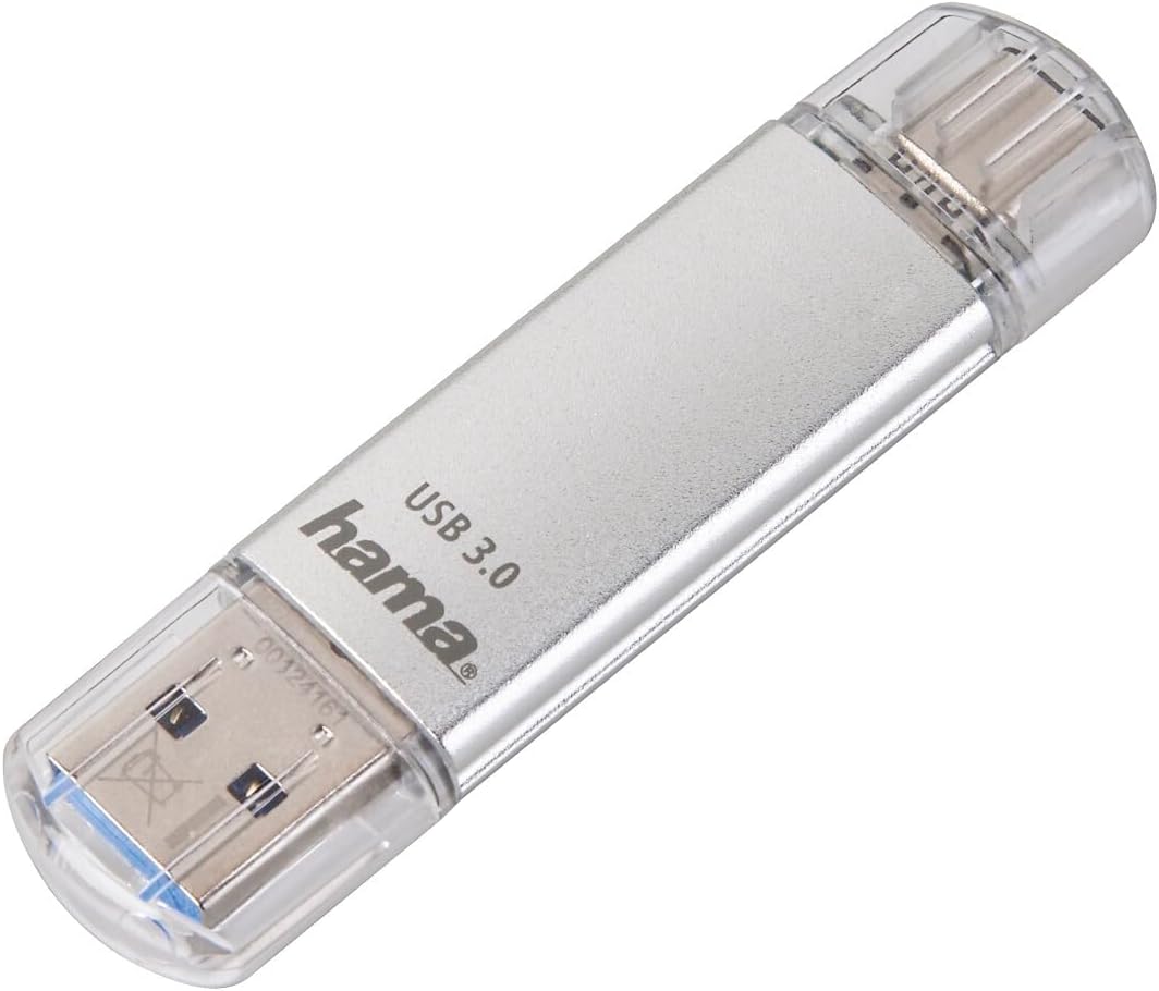 Nośnik danych ze złączem USB-C 3.0 i złączem USB 3.0/USB 3.1 (Gen 1) - Umożliwia bezpośrednie nagrywanie i odtwarzanie filmów w FullHD - Koniec z uciążliwymi próbami: Wtyczki USB-C można dowolnie podłączać - Kompaktowy drążek ze stylową srebrną aluminiową obudową - Z zaślepką dla obu połączeń - Nadaje się do urządzeń końcowych ze złączem USB-C i interfejsem USB - Ultra szybki wyjmowany nośnik pamięci - Uniwersalne zastosowanie dzięki połączeniu wtyczki USB typu A i wtyczki USB-C