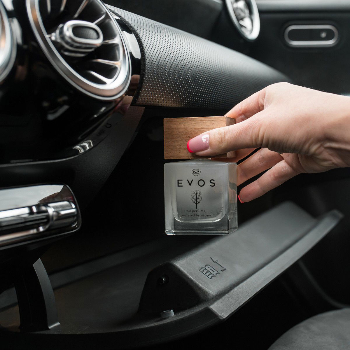 Perfumy do samochodu K2 EVOS GRACE to inspirowana naturą, niezwykła kompozycja wyjątkowych nut zapachowych, zaprojektowana z myślą o wnętrzach nowoczesnych aut.Rozpylony we wnętrzu aromat EVOS GRACE nadaje mu elegancji i wytworności, podnosi komfort przebywania w nim. Jazda samochodem staje się przyjemnością, wytchnieniem i ucieczką do wykwintnego świata luksusu. Specjalnie dobrane kompozycje zapachowe z olejkami eterycznymi, urzekają bogactwem i głębią zapachu.