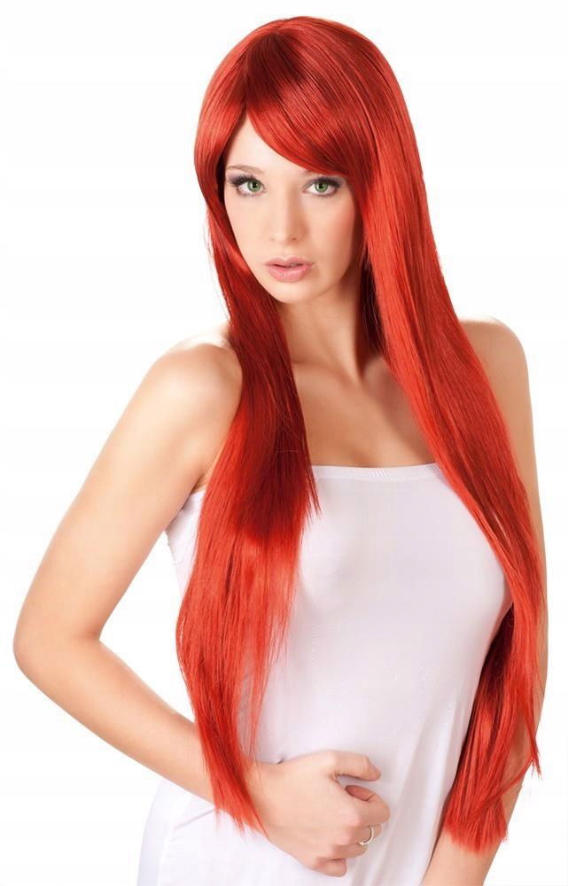 Czerwona, prosta peruka z długimi włosami i modną grzywką. Peruka jest regulowana, co pozwala na swobodne dopasowanie. Uwaga: Nie nadaje się do lokówki i prostownicy - najlepiej użyć specjalnego szamponu do peruki do czyszczenia.