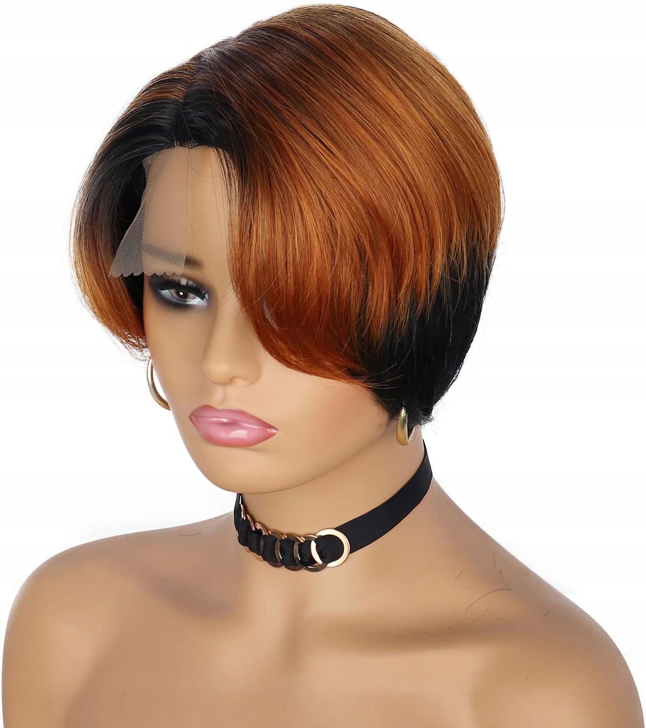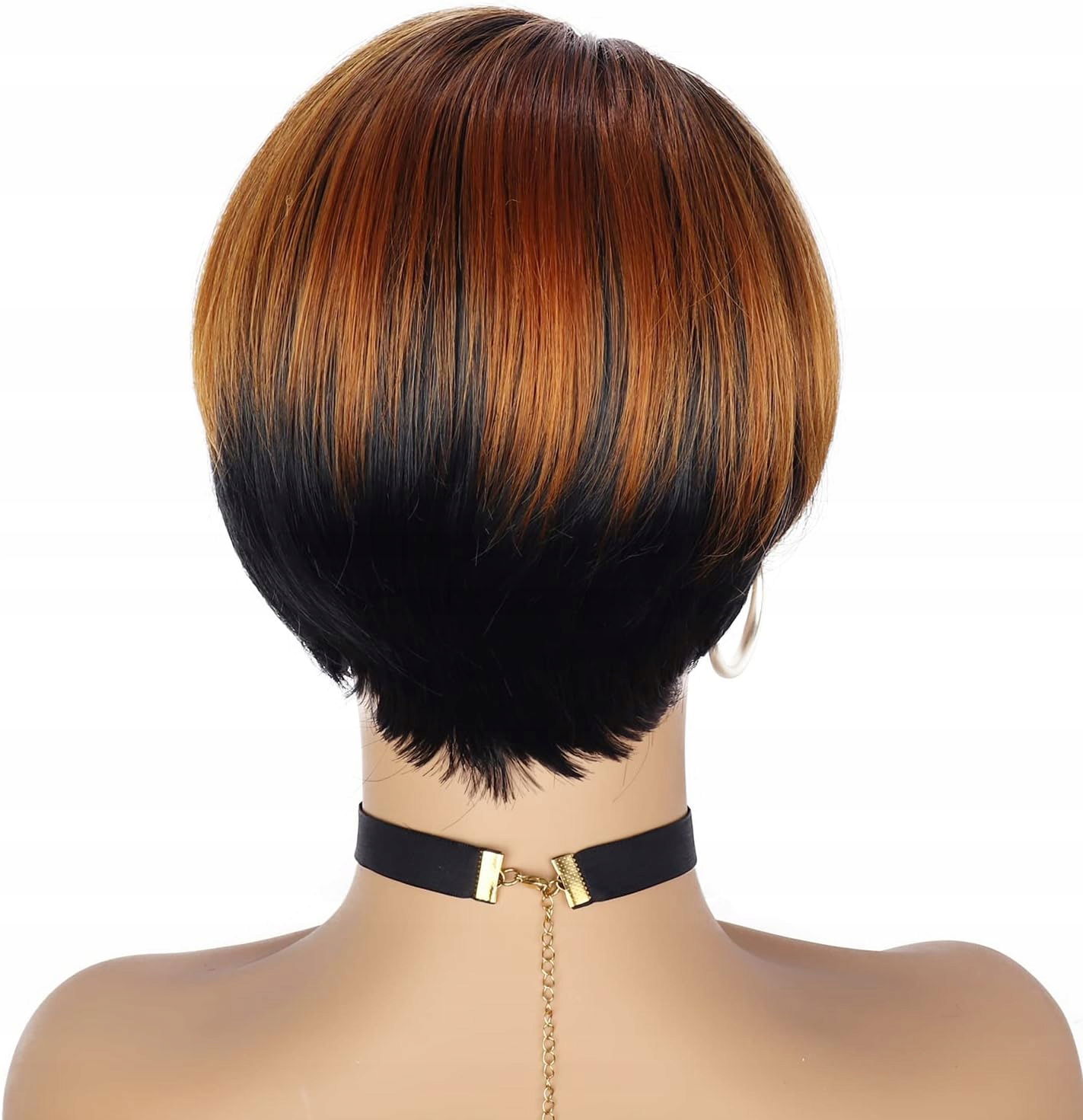Peruka włosy krótkie syntetyczne czarna z rudym PORSMEER pełne włosy