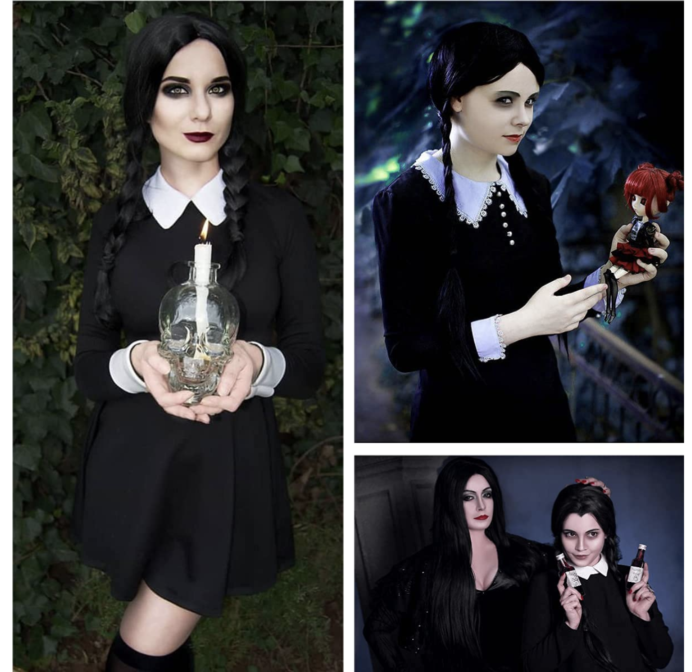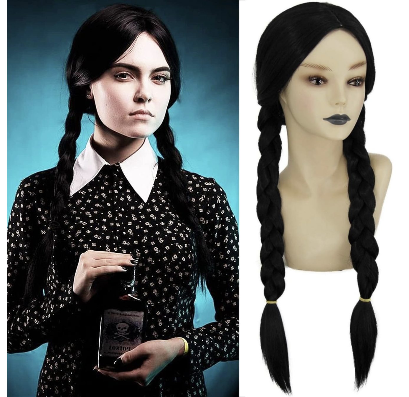 - ✅ Zestaw zawiera: 1 czarną perukę do kostiumu Wednesday Addams + czepek pod perukę