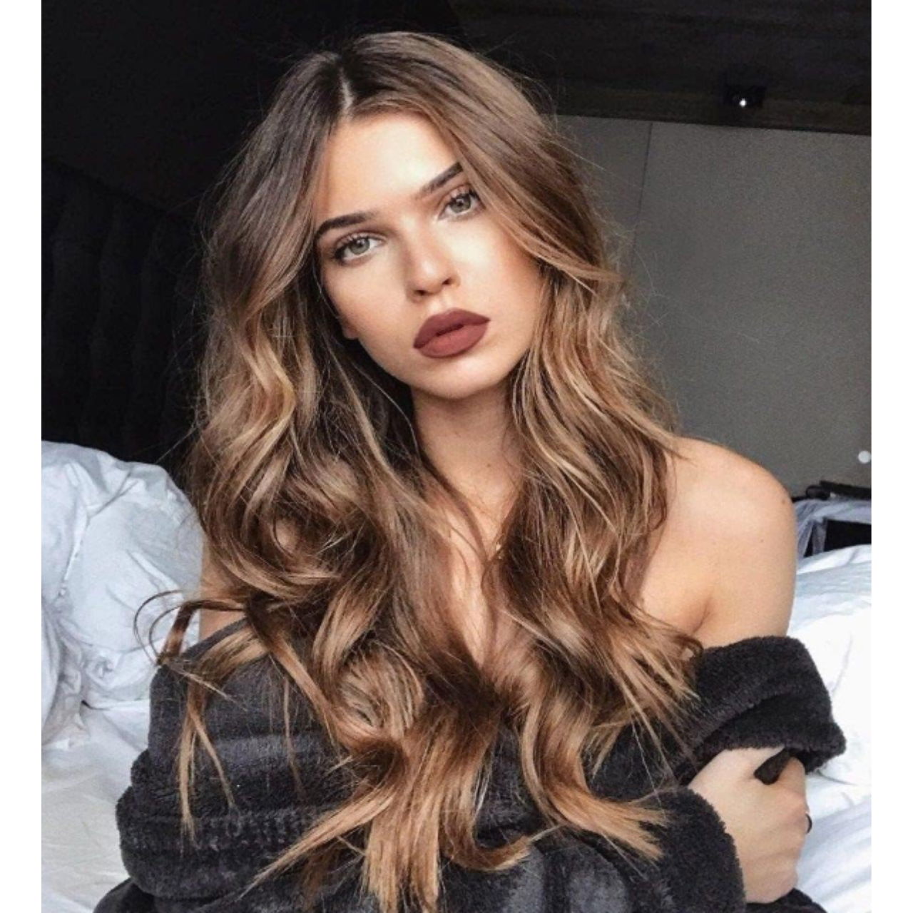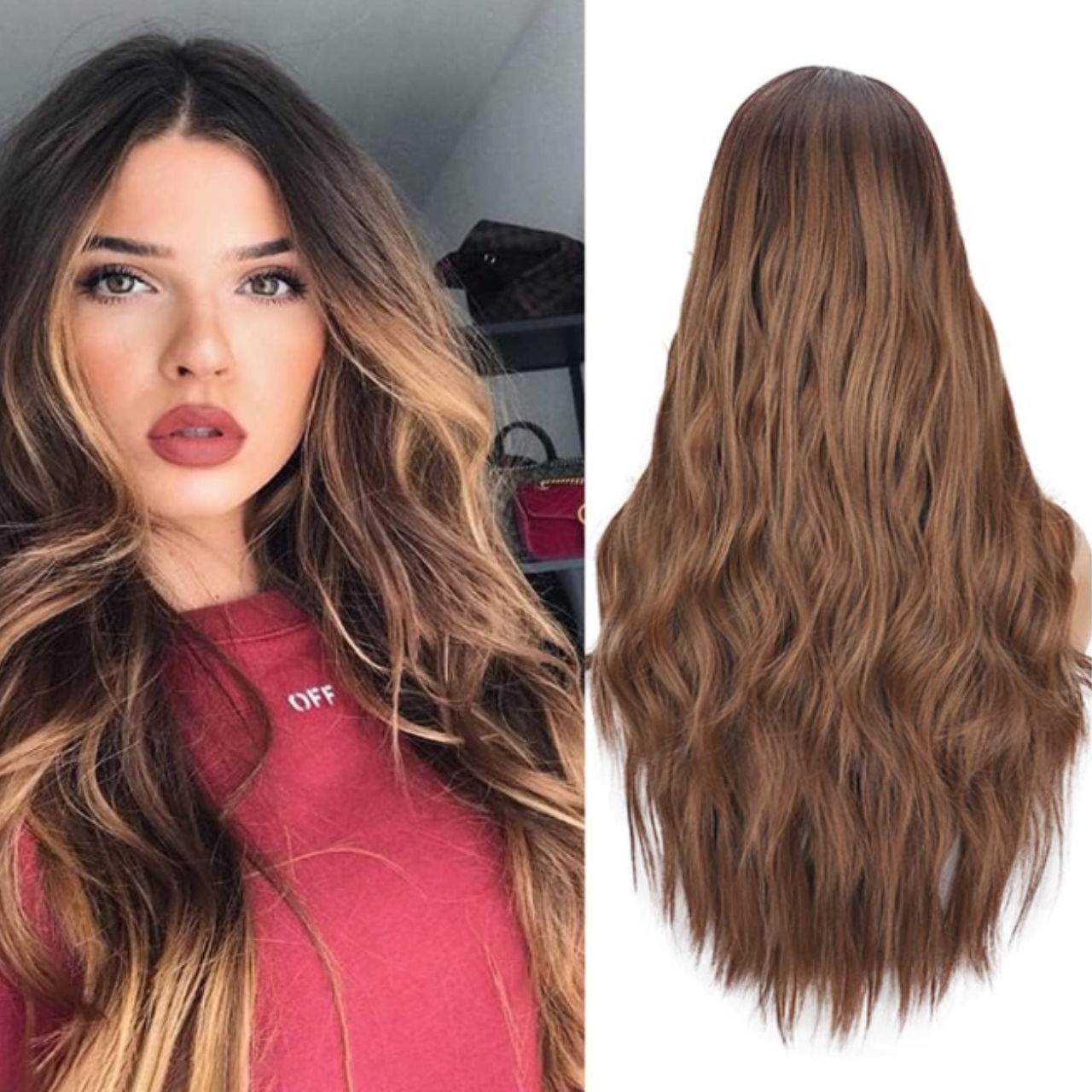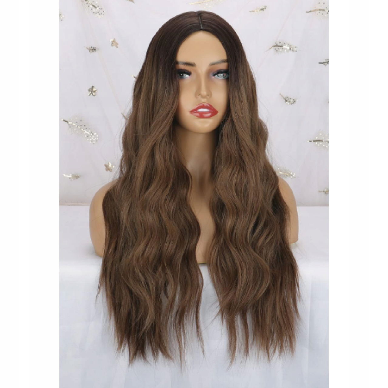 Brązowa peruka z przedziałkiem na środku podkreśla naturalne piękno i nadaje klasy każdej stylizacji.